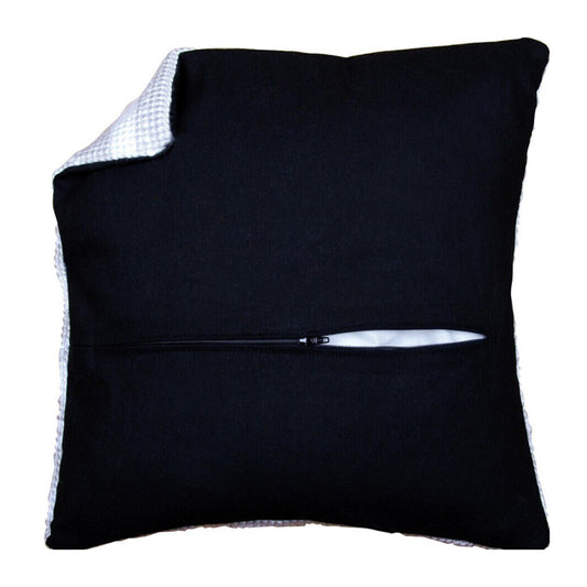 DESIGN: This plain cushion back is black of color. Zip this to your own creation...