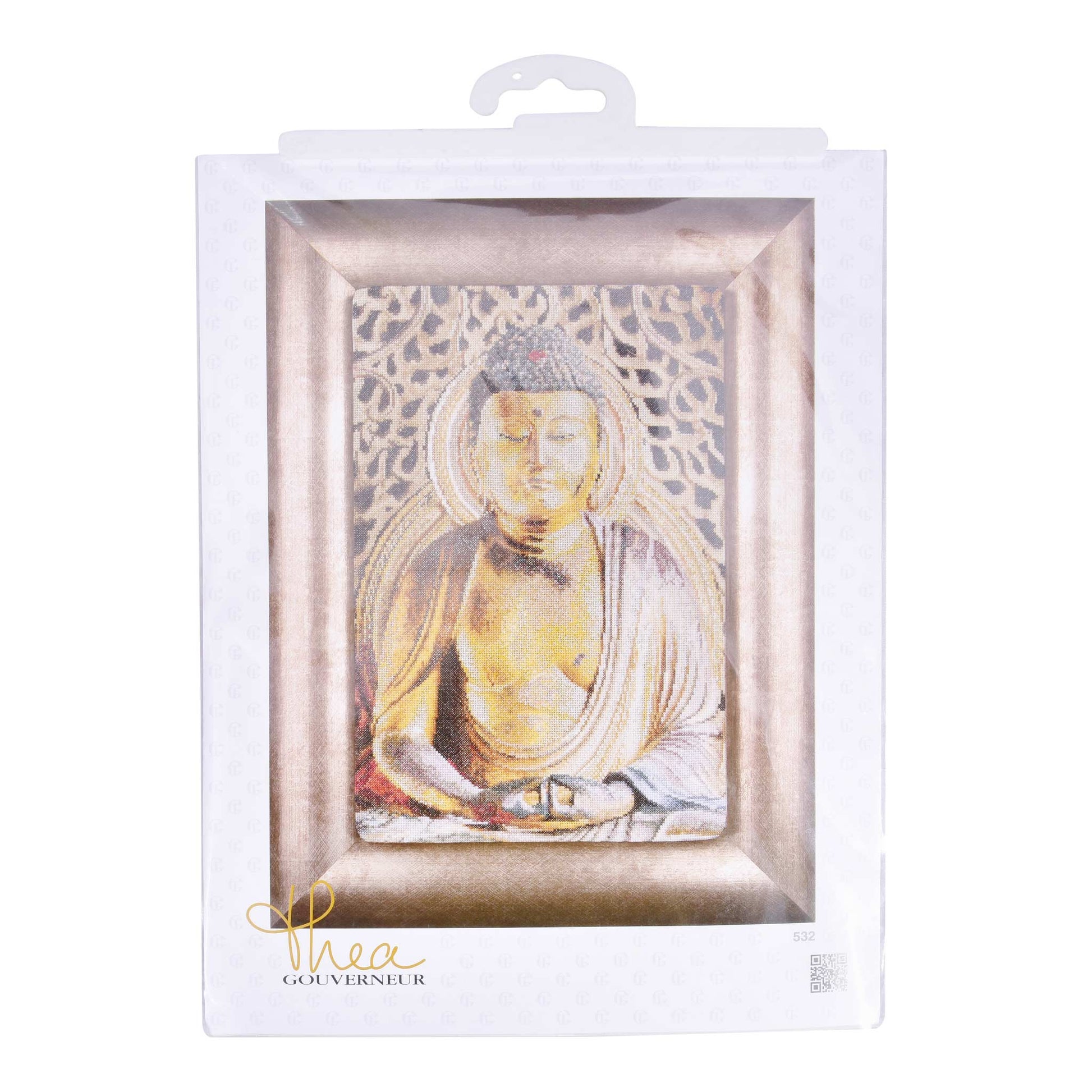 DESIGN: Thea Gouverneur bietet eine große Auswahl an Kreuzstich-Sets mit kulturellen Motiven. Dieses Kreuzstichmuster zeigt Buddha