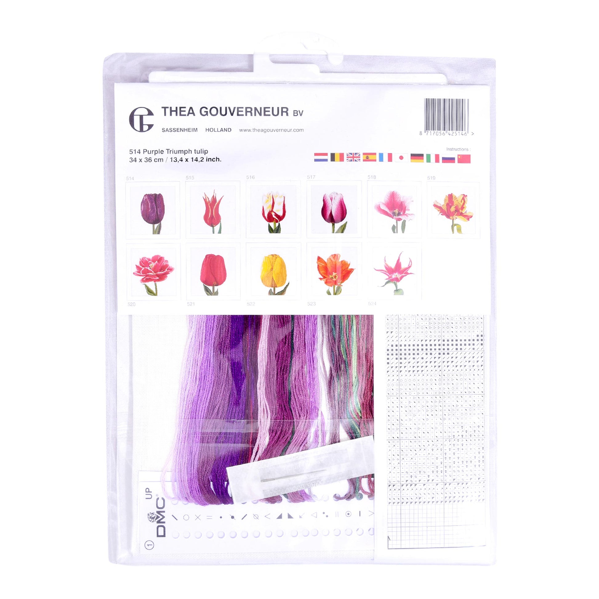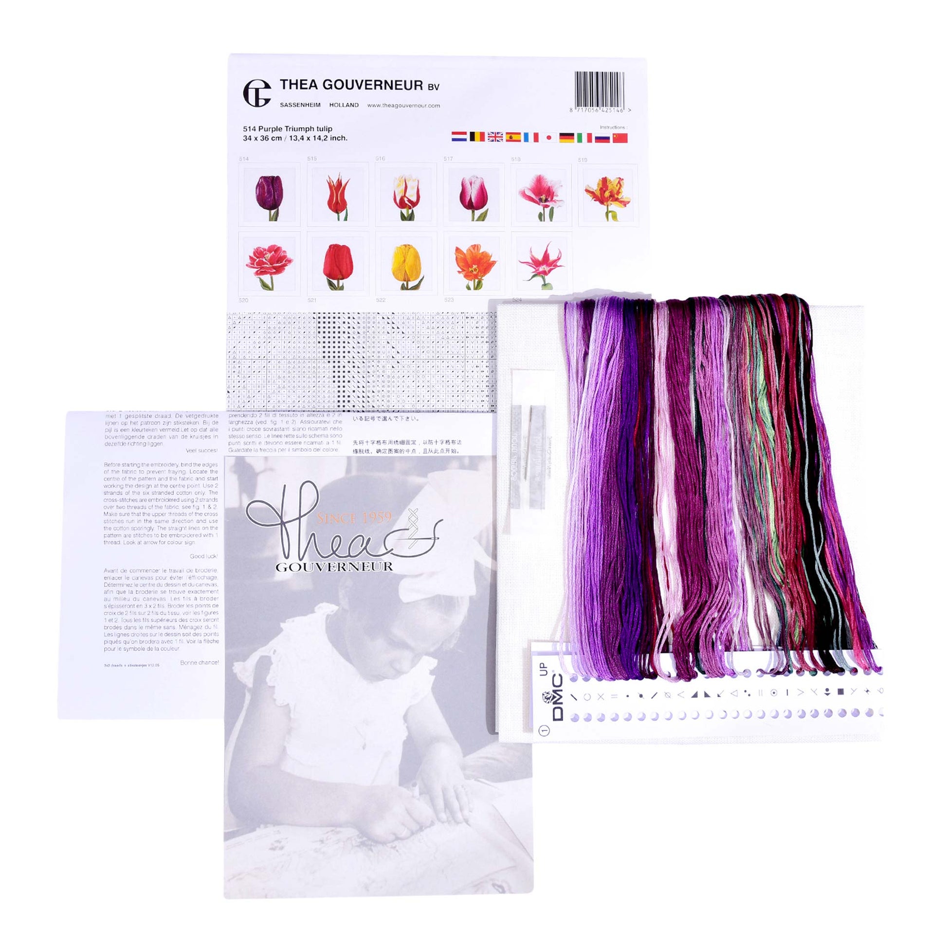 DESIGN: Von der Natur inspirierte Designs sind ein Highlight der Kreuzstich-Kollektion von Thea Gouverneur. Dieses gezählte Kreuzstichmuster zeigt eine Purple Triumph Tulip
