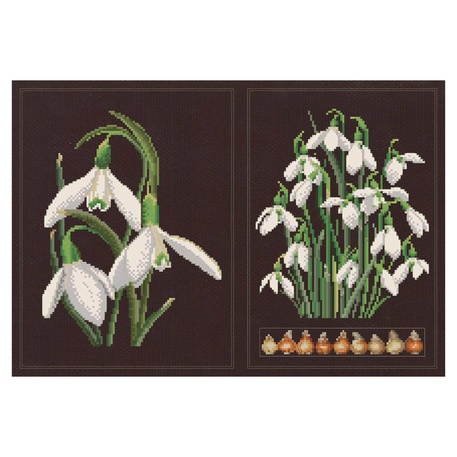 DESIGN: Von der Natur inspirierte Designs sind ein Highlight der Kreuzstich-Kollektion von Thea Gouverneur. Dieses gezählte Kreuzstichmuster zeigt wunderschöne weiße Blumen, die „Schneeglöckchen” genannt werden.