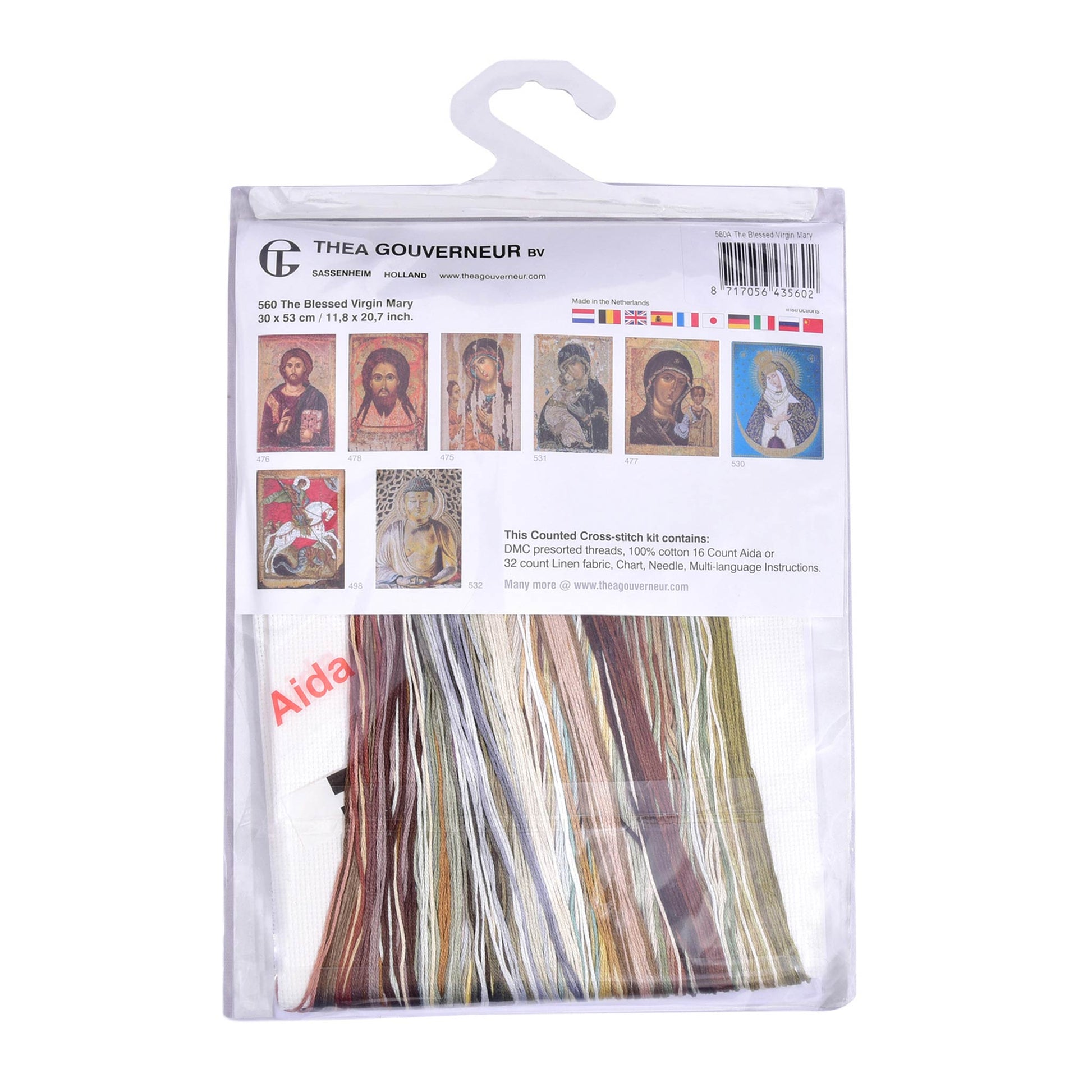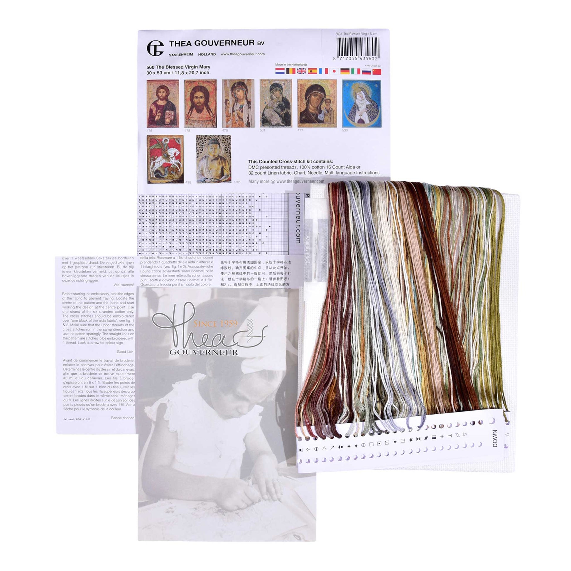 DESIGN: Thea Gouverneur bietet eine große Auswahl an Kreuzstich-Sets mit kulturellen Motiven. Dieses Kreuzstichmuster zeigt die Heilige Jungfrau Maria