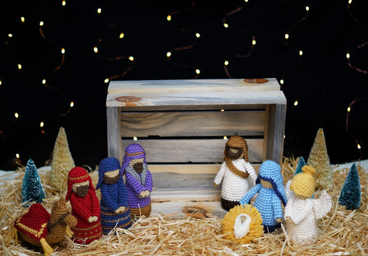 Tell the Christmas story with crochet! This amigurumi-inspired nativity set includes crocheted figures for Mary,...