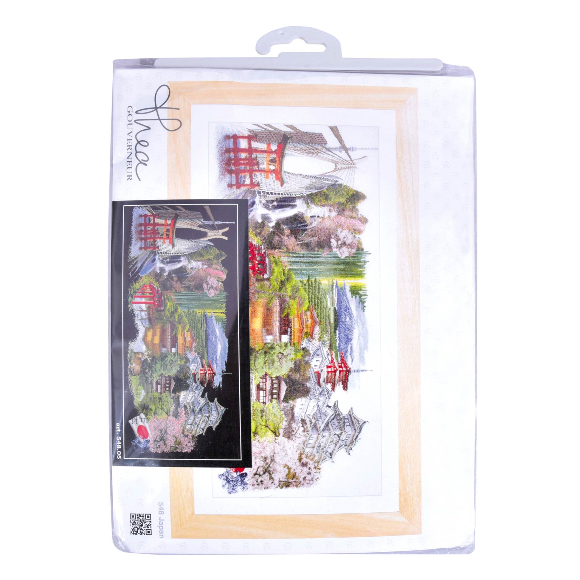 DESIGN: Landscape designs are a highlight of the Thea Gouverneur cross stitch collection. This colorful counted cross stitch pattern features some highlights of Japan in black