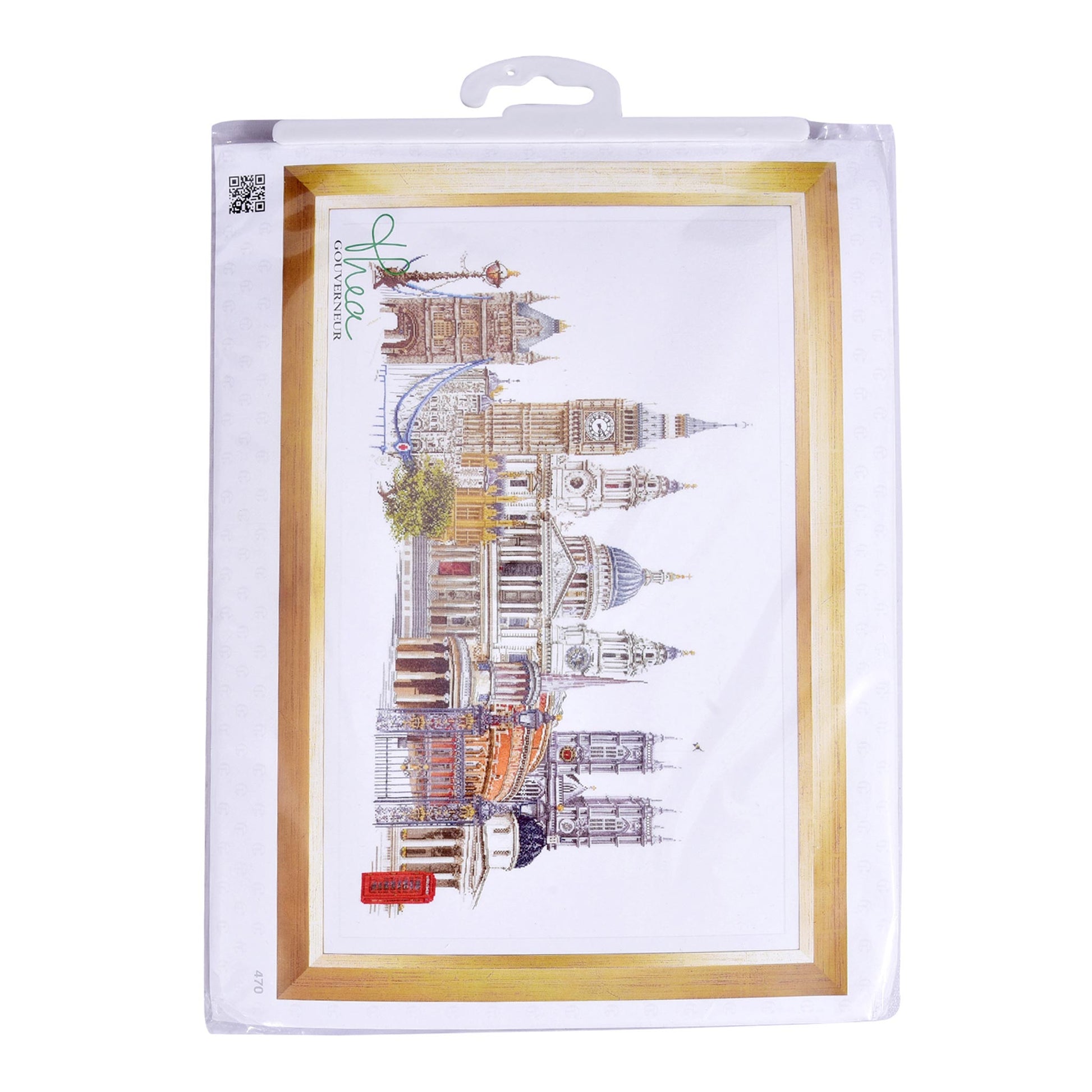DESIGN : Les motifs paysagers sont l'un des points forts de la collection de broderies au point de croix Thea Gouverneur. Ce motif coloré au point de croix représente une vue de Londres.