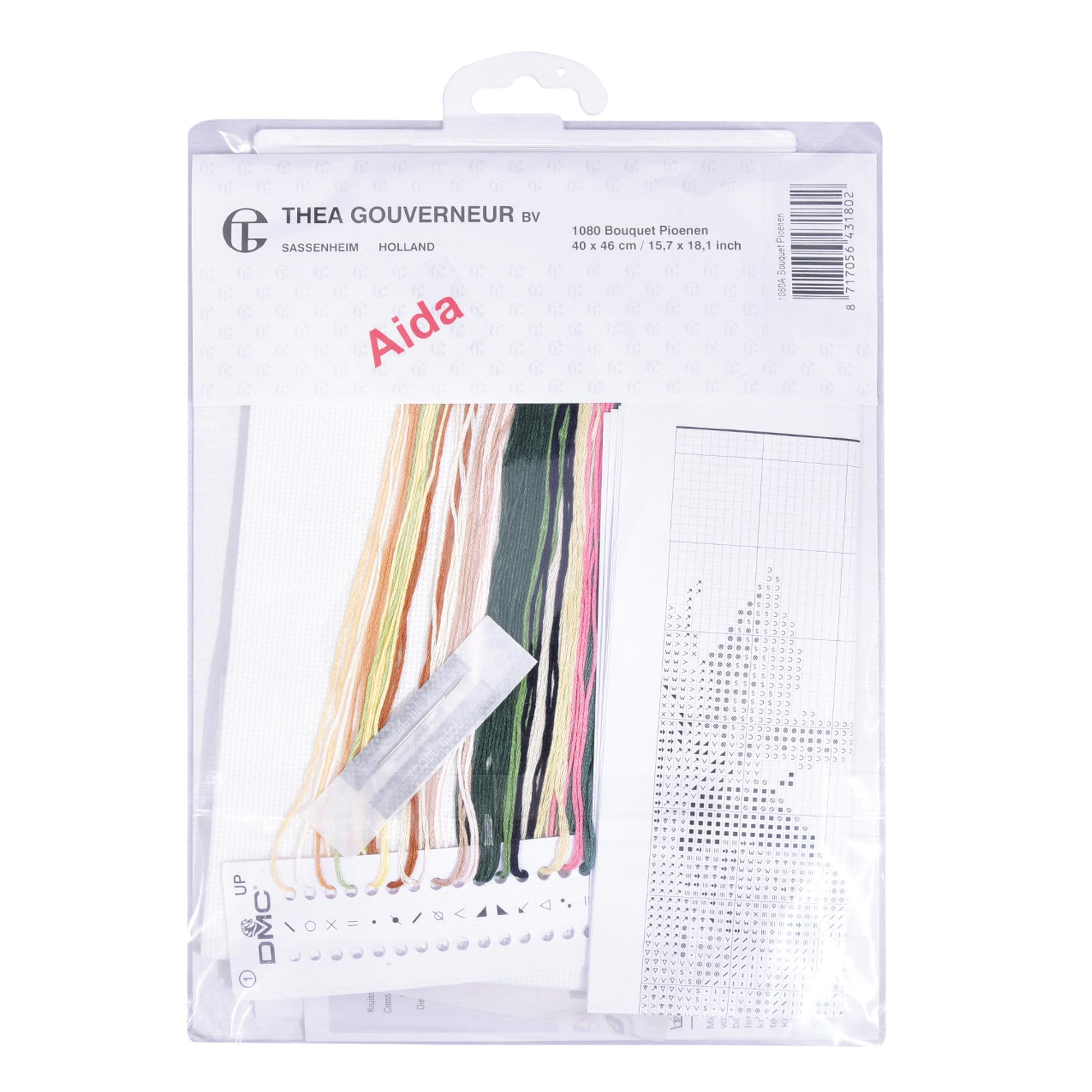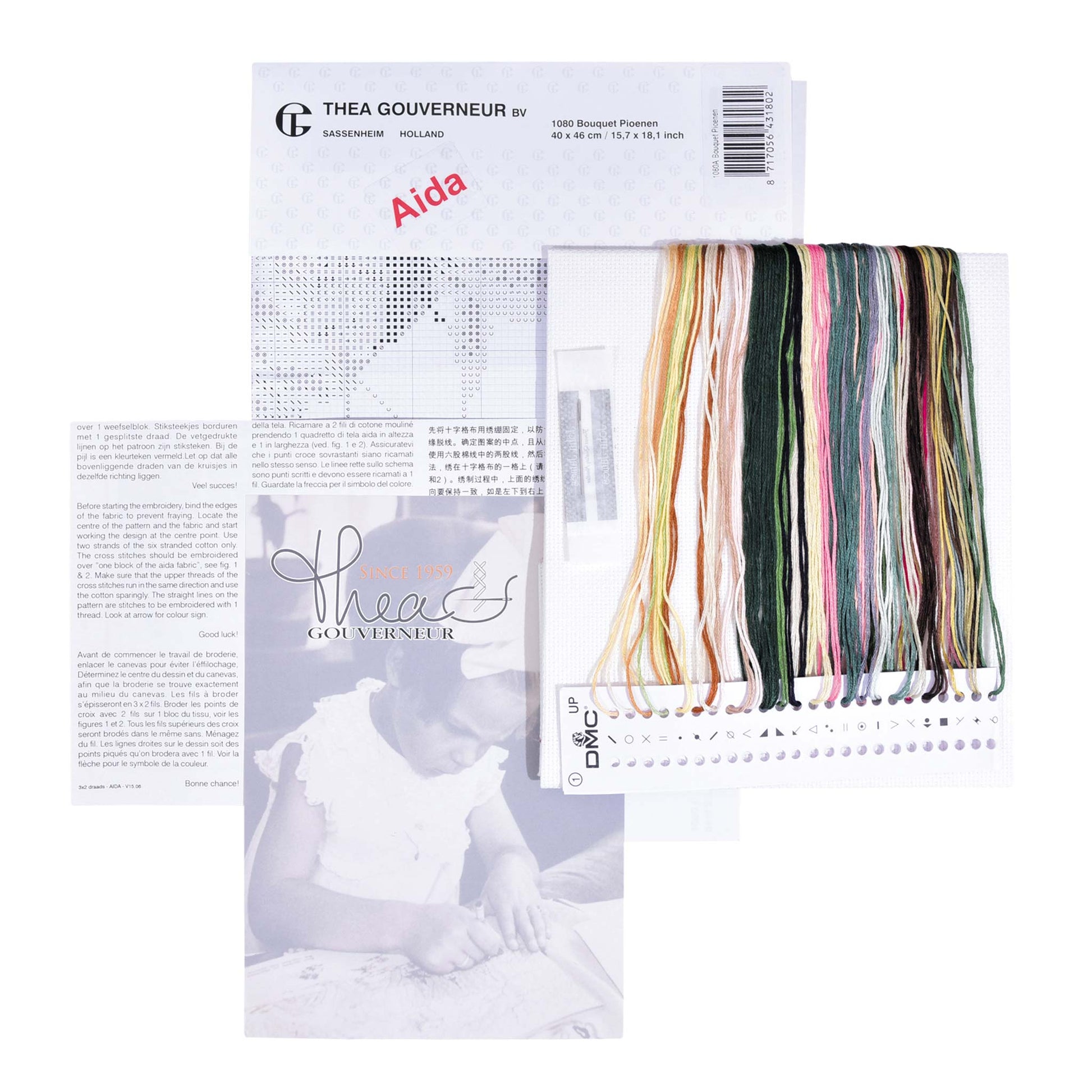 DESIGN : Les motifs inspirés de la nature sont l'un des points forts de la collection de broderies au point de croix Thea Gouverneur. Ce motif coloré au point de croix compte 16 fils et représente des pivoines