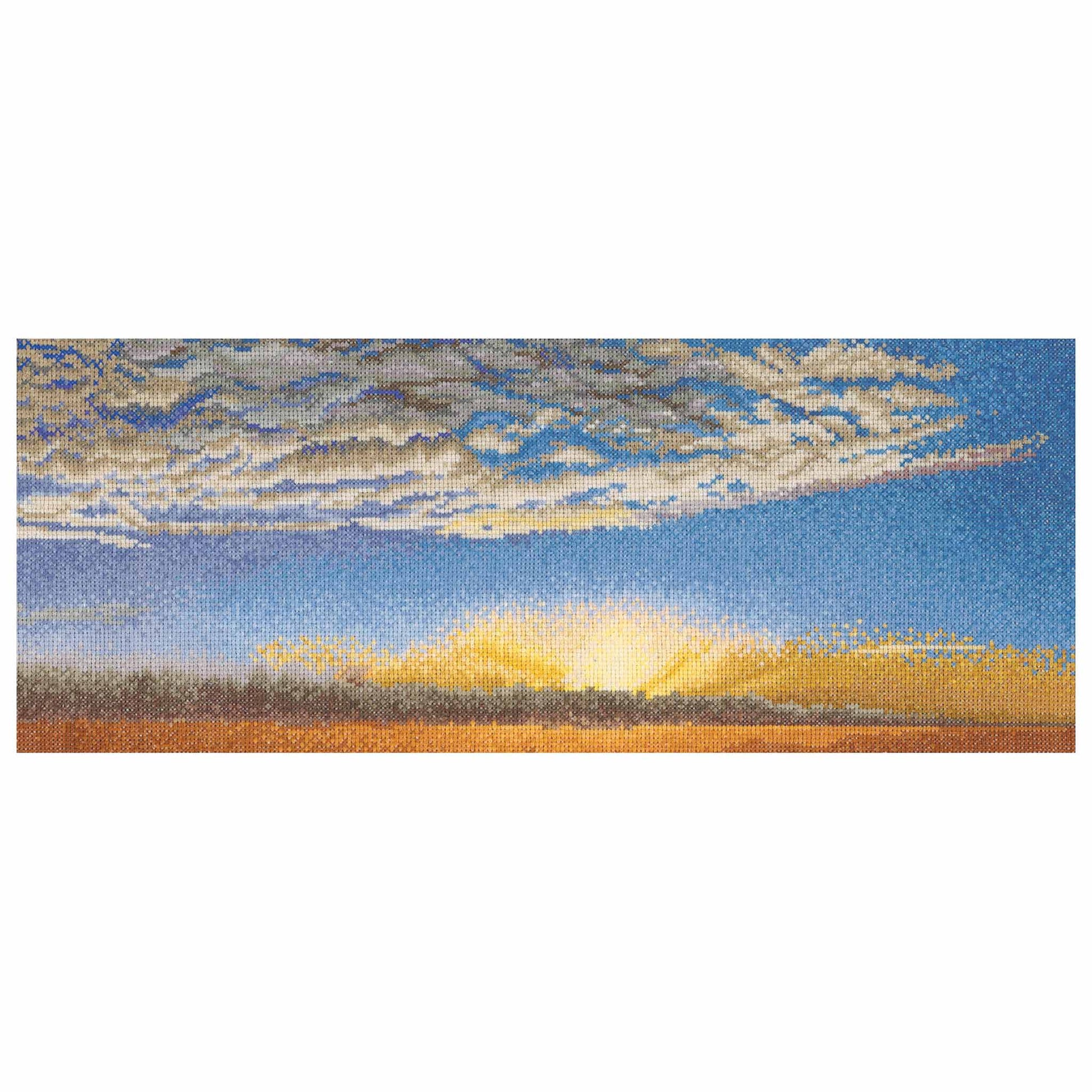 DESIGN: Nature-inspired designs are a highlight of the Thea Gouverneur cross stitch collection. This colorful counted cross stitch pattern features a beautiful sky with a sunset
