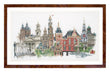 ONTWERP: Landschapsontwerpen zijn een hoogtepunt van de Thea Gouverneur kruissteekcollectie. Dit kleurrijke telpatroon toont een uitzicht op Amsterdam