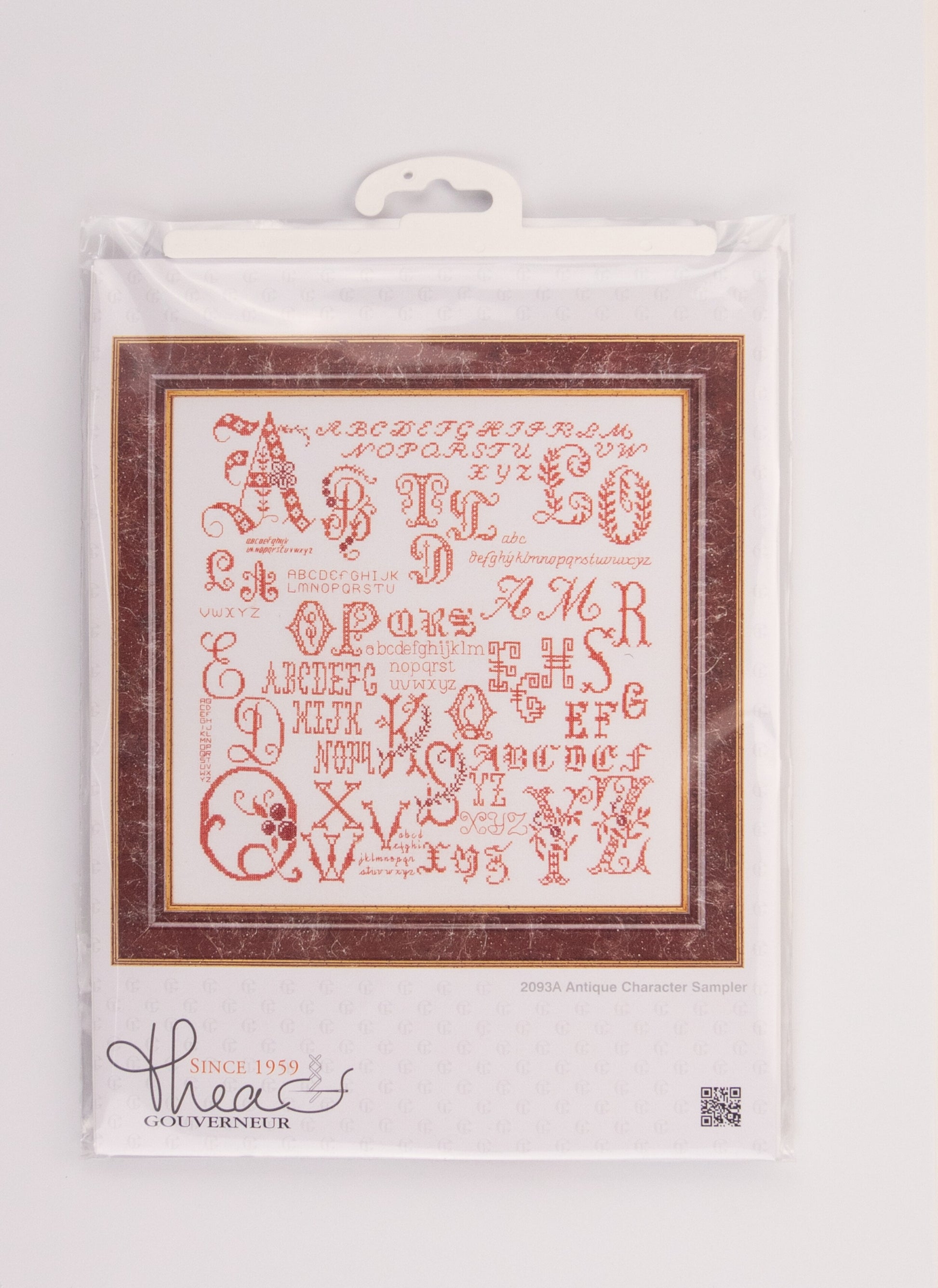 ONTWERP: Door de natuur geïnspireerde ontwerpen zijn een hoogtepunt van de Thea Gouverneur kruissteekcollectie. Dit geteld kruissteekpatroon bevat een antieke karaktersampler