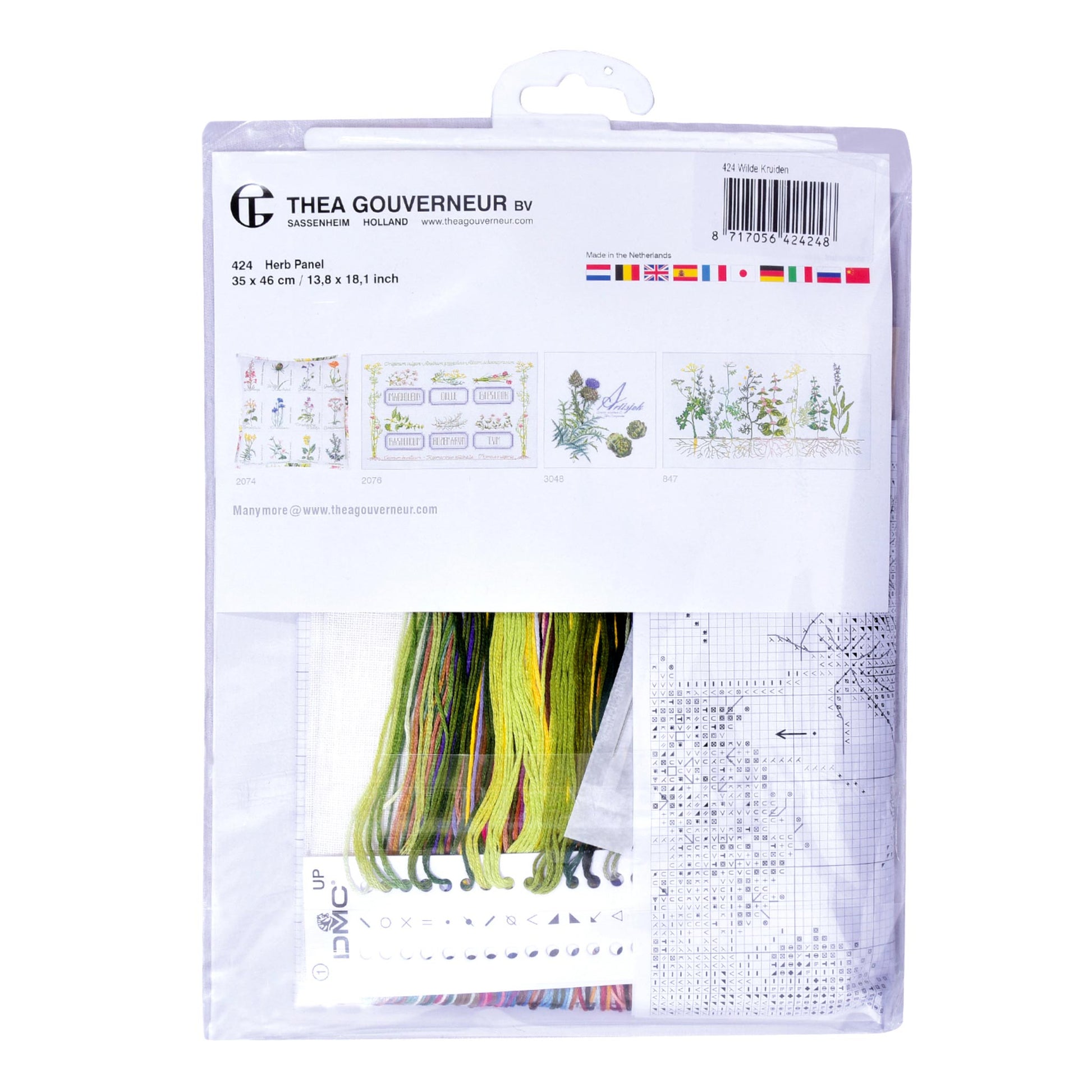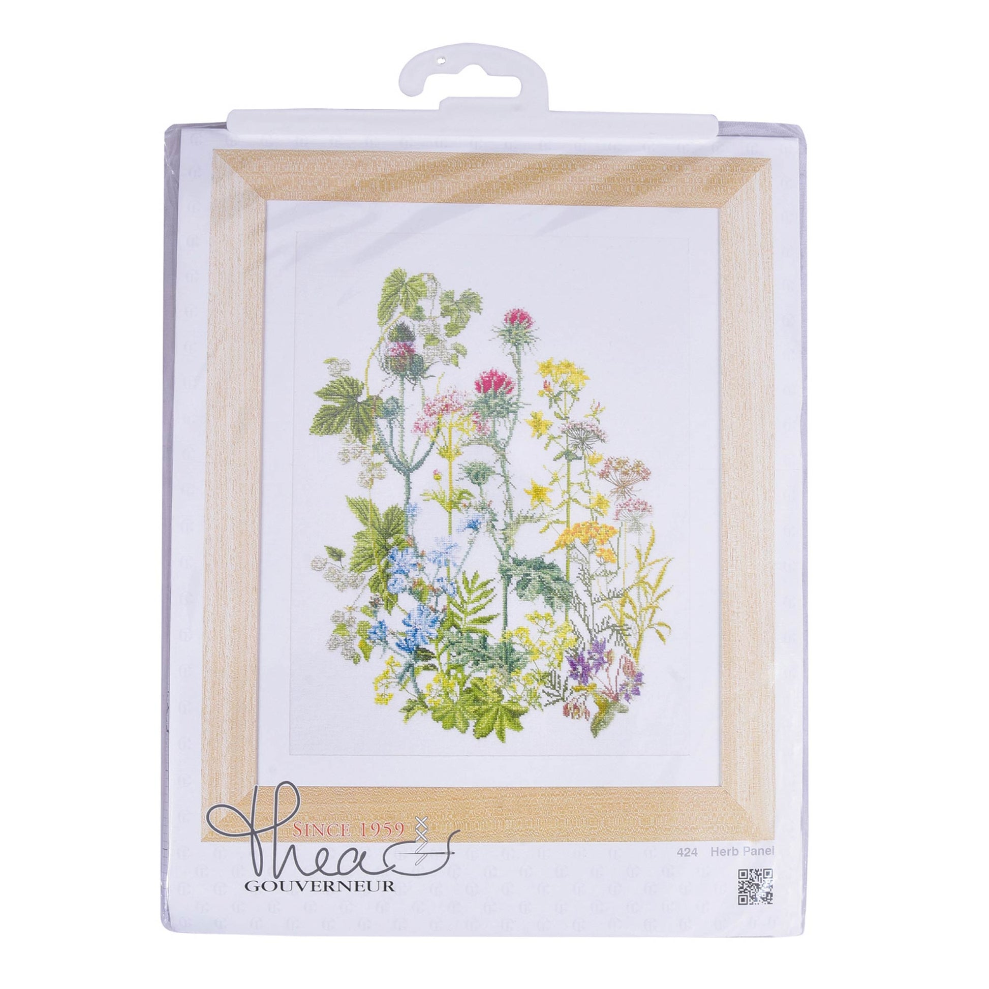 ONTWERP: Ontwerpen geïnspireerd op de natuur zijn een hoogtepunt van de kruissteekcollectie van Thea Gouverneur. Dit kleurrijke kruissteekpatroon bevat een verscheidenheid aan wilde kruiden