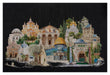 ONTWERP: Landschapsontwerpen zijn een hoogtepunt van de Thea Gouverneur kruissteekcollectie. Dit kleurrijke geteld kruissteekpatroon toont een uitzicht op Jeruzalem