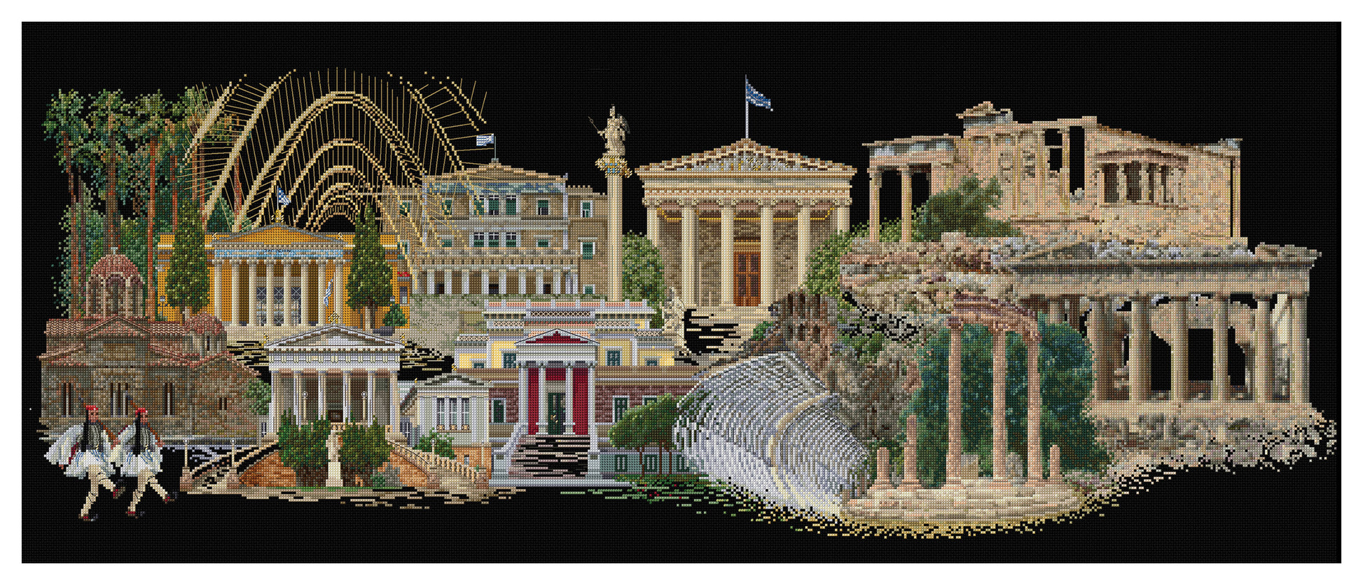 DESIGN: Landscape designs are a highlight of the Thea Gouverneur cross stitch collection. This colorful counted cross stitch pattern features a view of Athens
