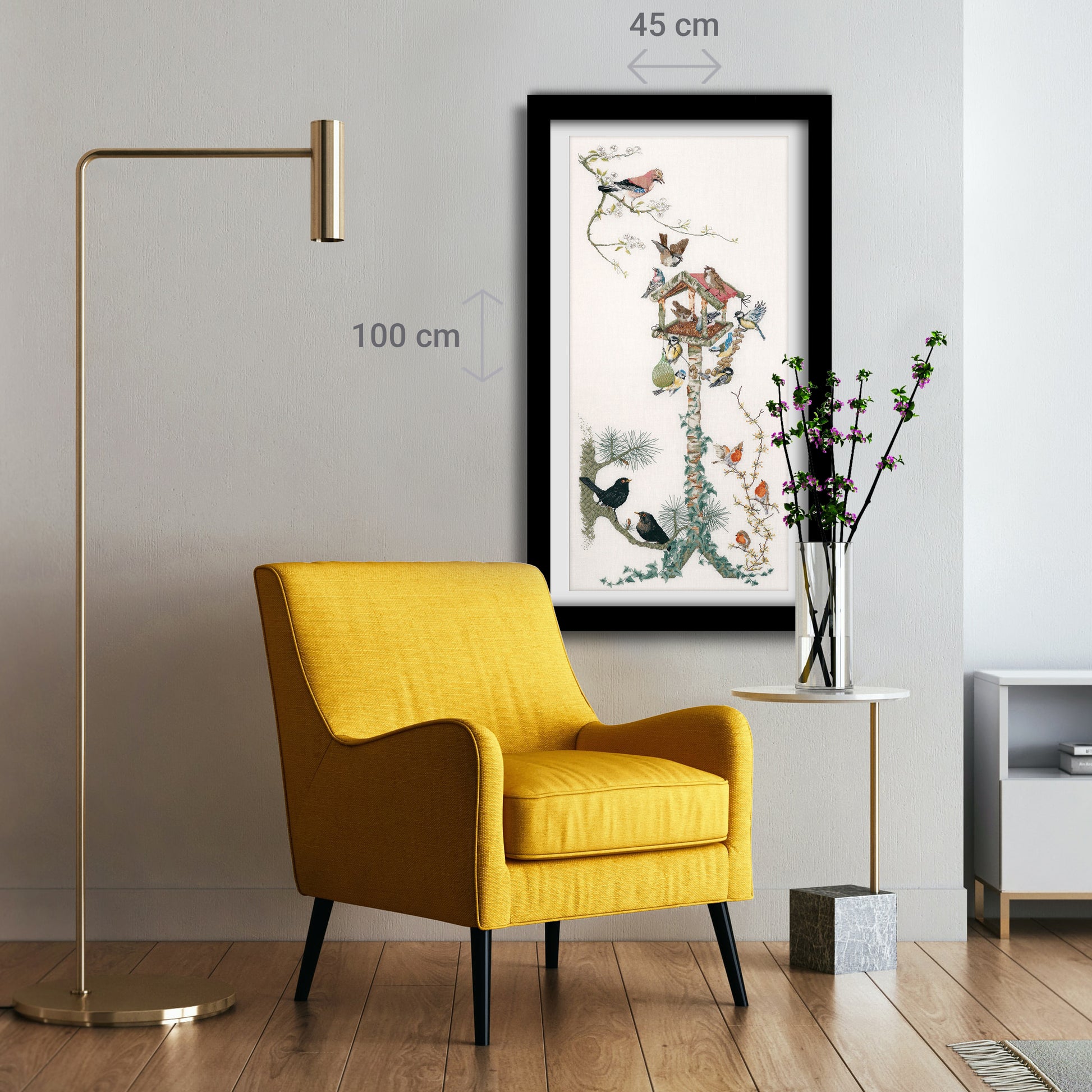 DESIGN: Nature-inspired designs are a highlight of the Thea Gouverneur cross stitch collection. This colorful counted cross stitch pattern features a variety of birds in a birdhouse