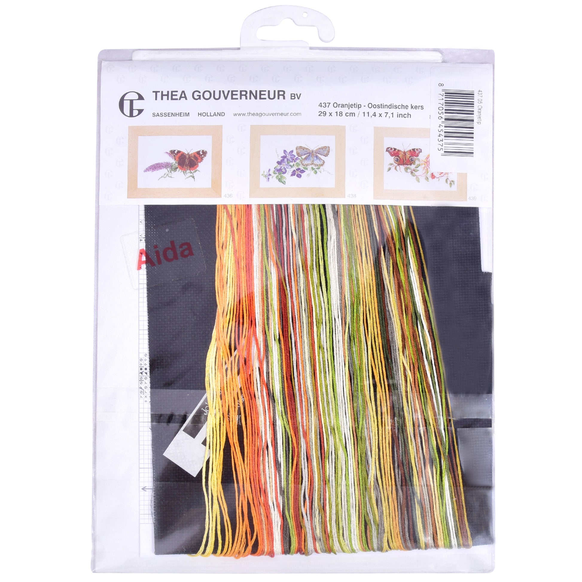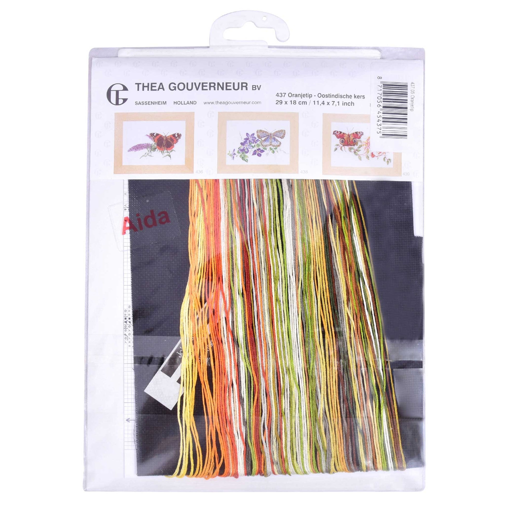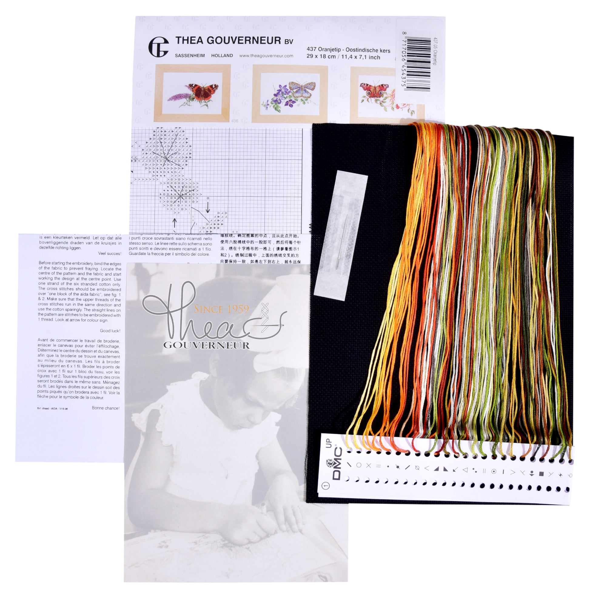 DESIGN: Nature-inspired designs are a highlight of the Thea Gouverneur cross stitch collection. This colorful counted cross stitch pattern features a butterfly and a nasturtium