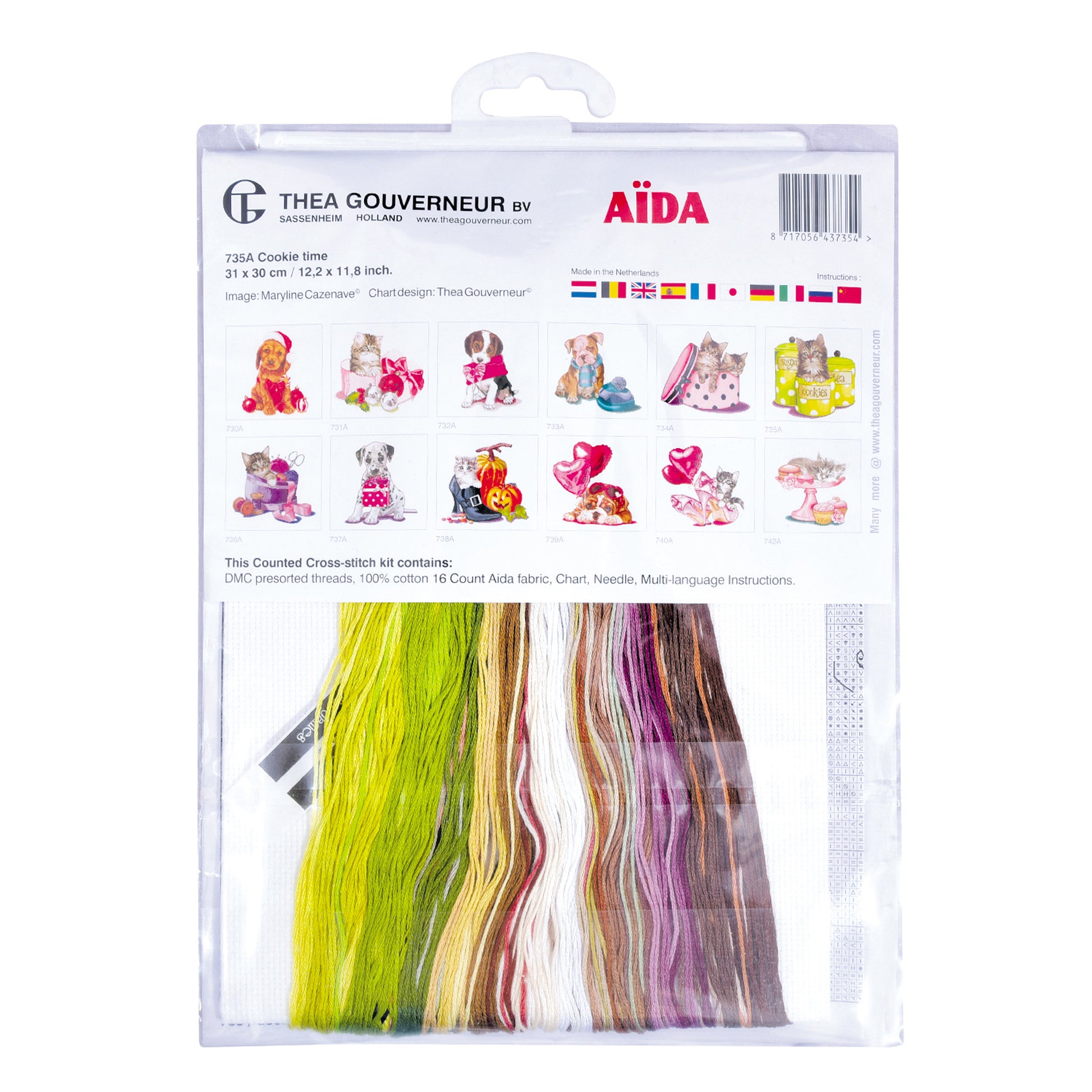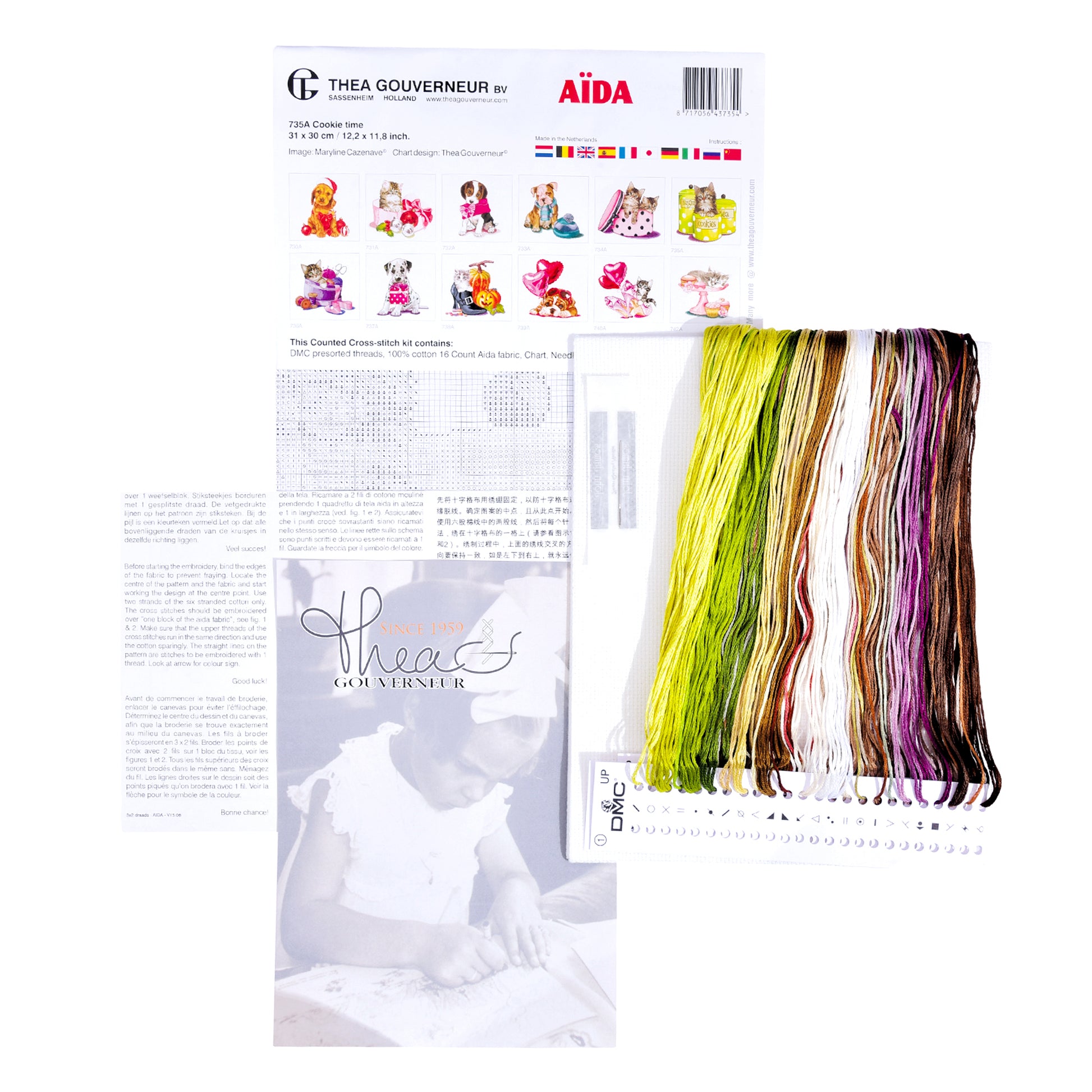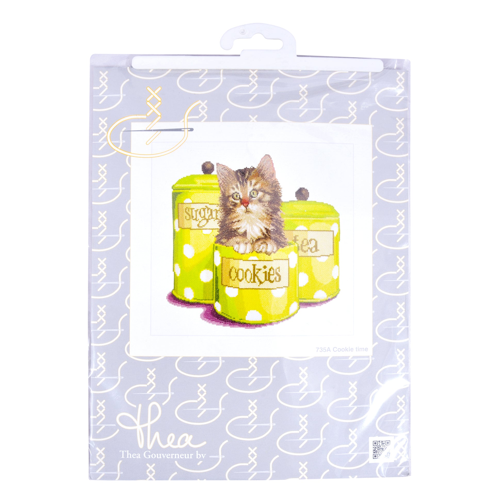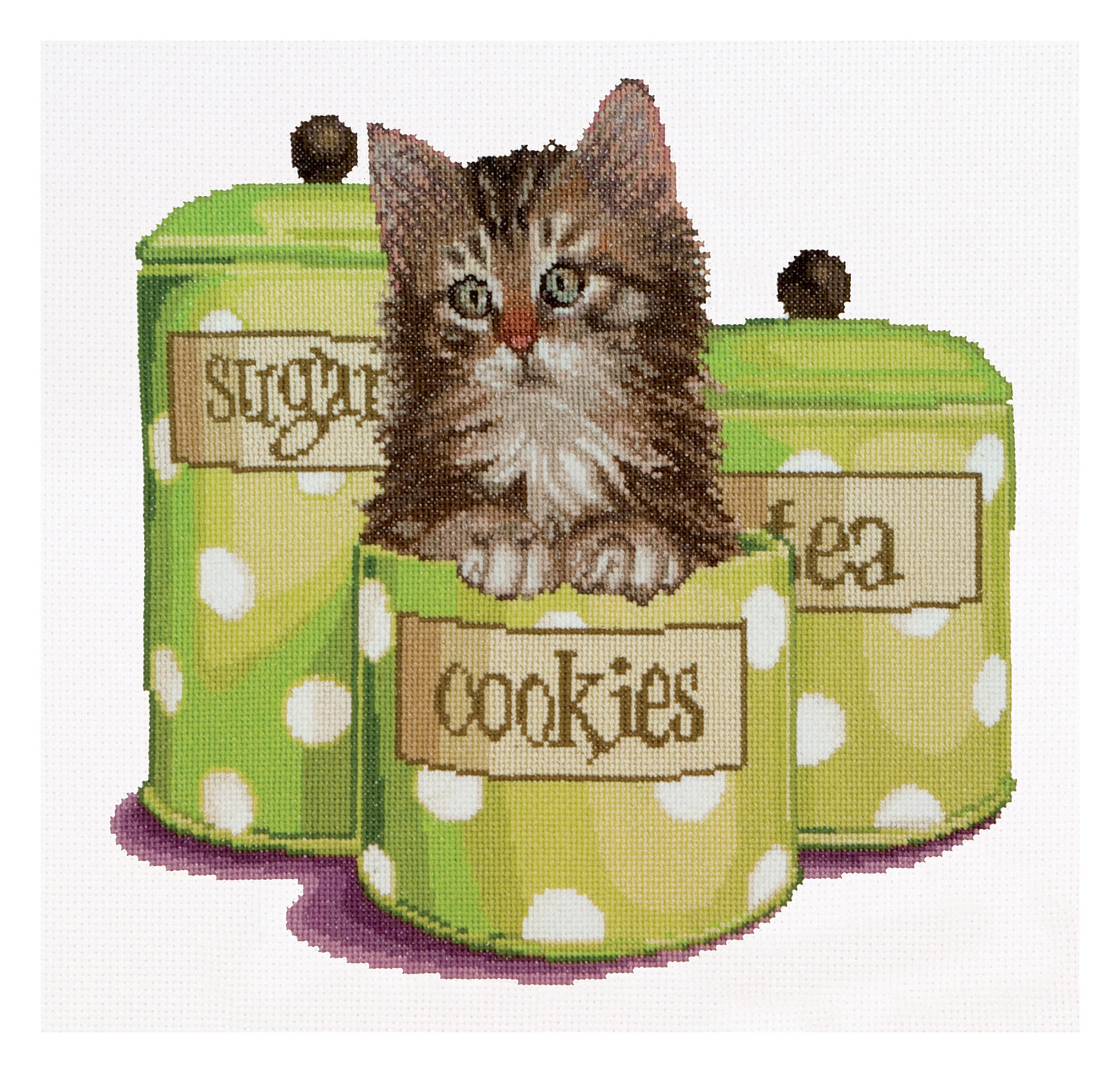 DESIGN: Thea Gouverneur has a large range of culture-themed counted cross stitch kits. This counted cross stitch pattern features a Kitten with cookies