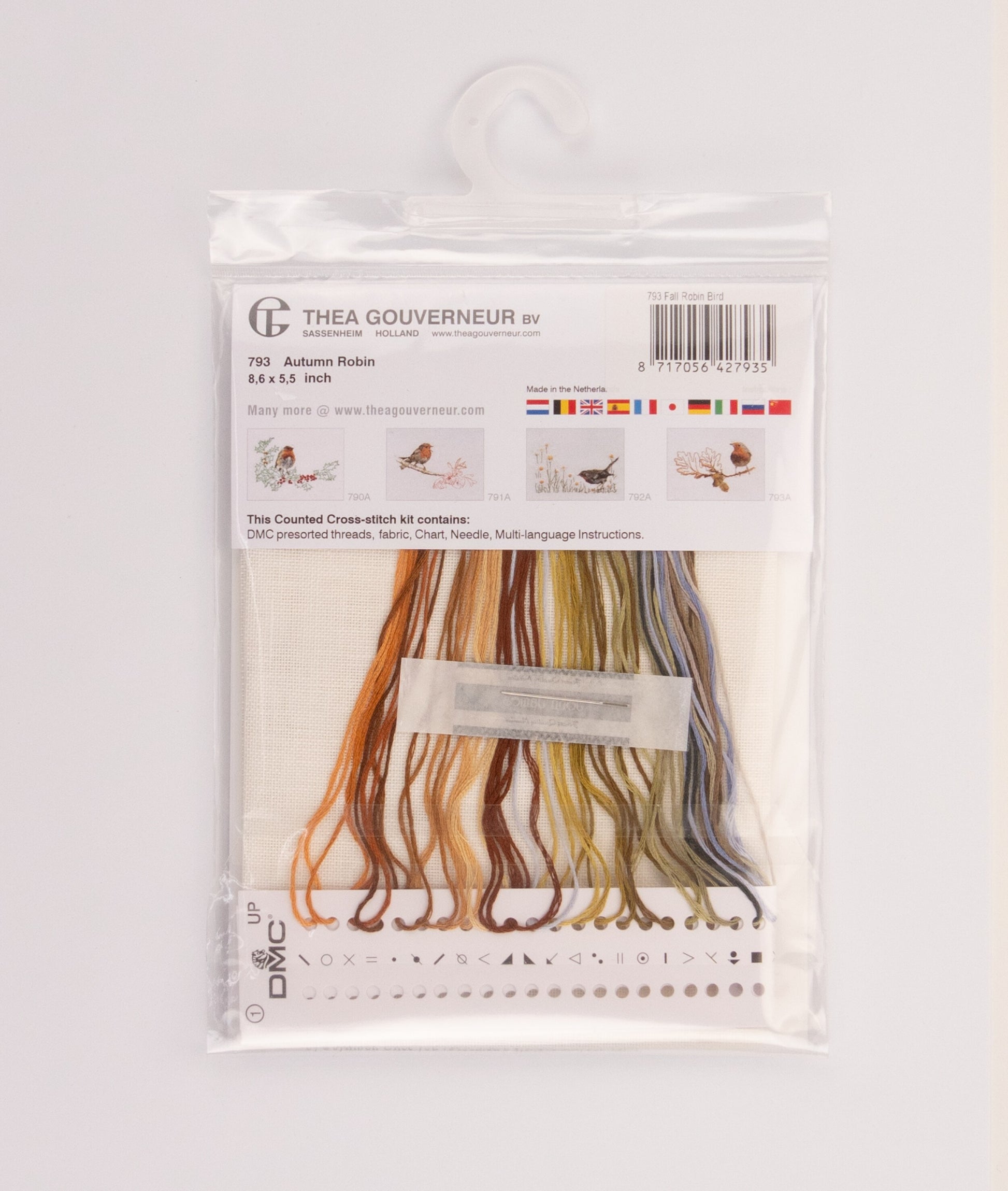 DESIGN: Nature-inspired designs are a highlight of the Thea Gouverneur cross stitch collection. This counted cross stitch pattern features a bird during fall