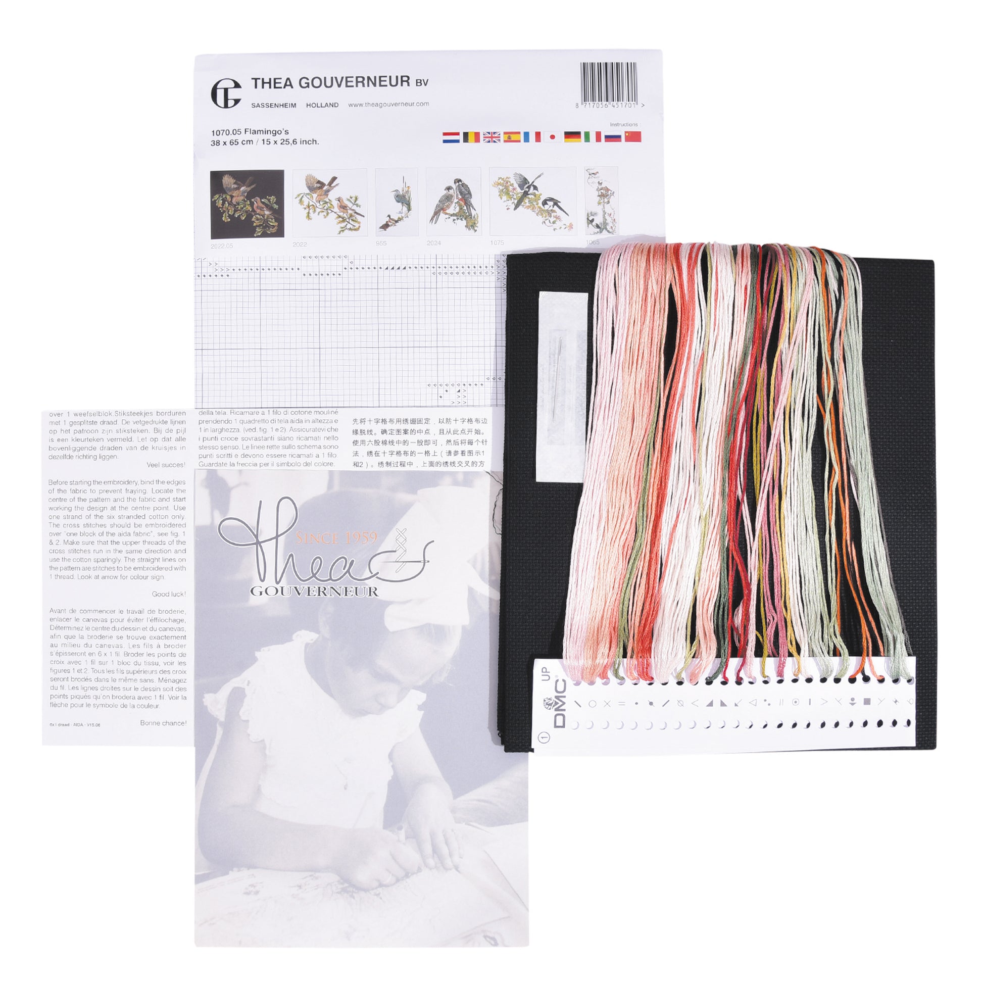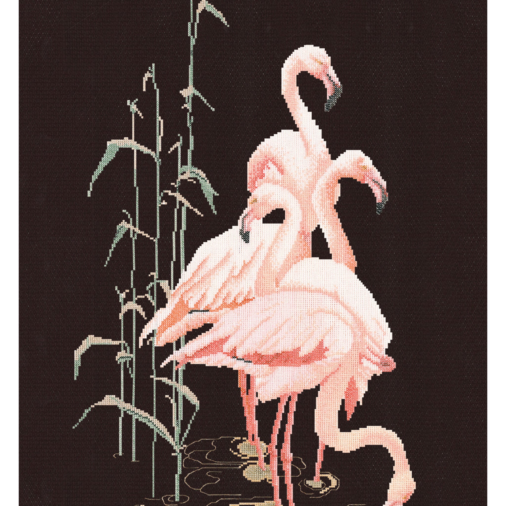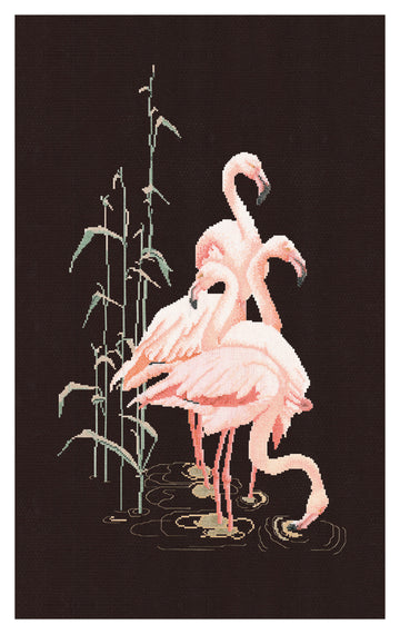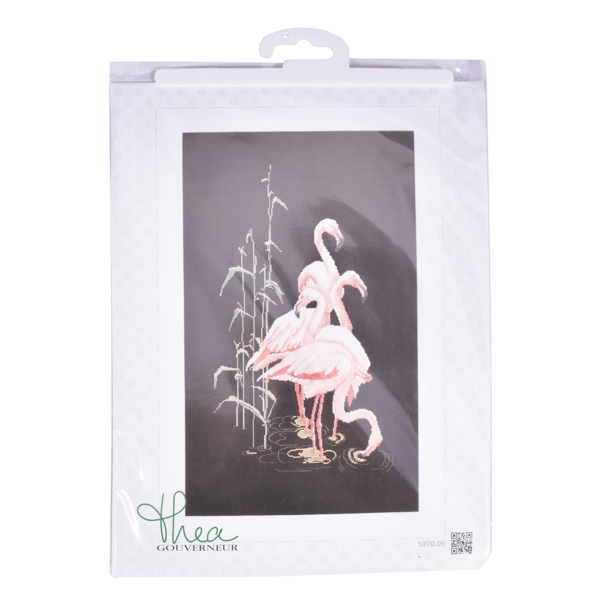 DESIGN: Nature-inspired designs are a highlight of the Thea Gouverneur cross stitch collection. This colorful counted cross stitch pattern features flamingos in the water
