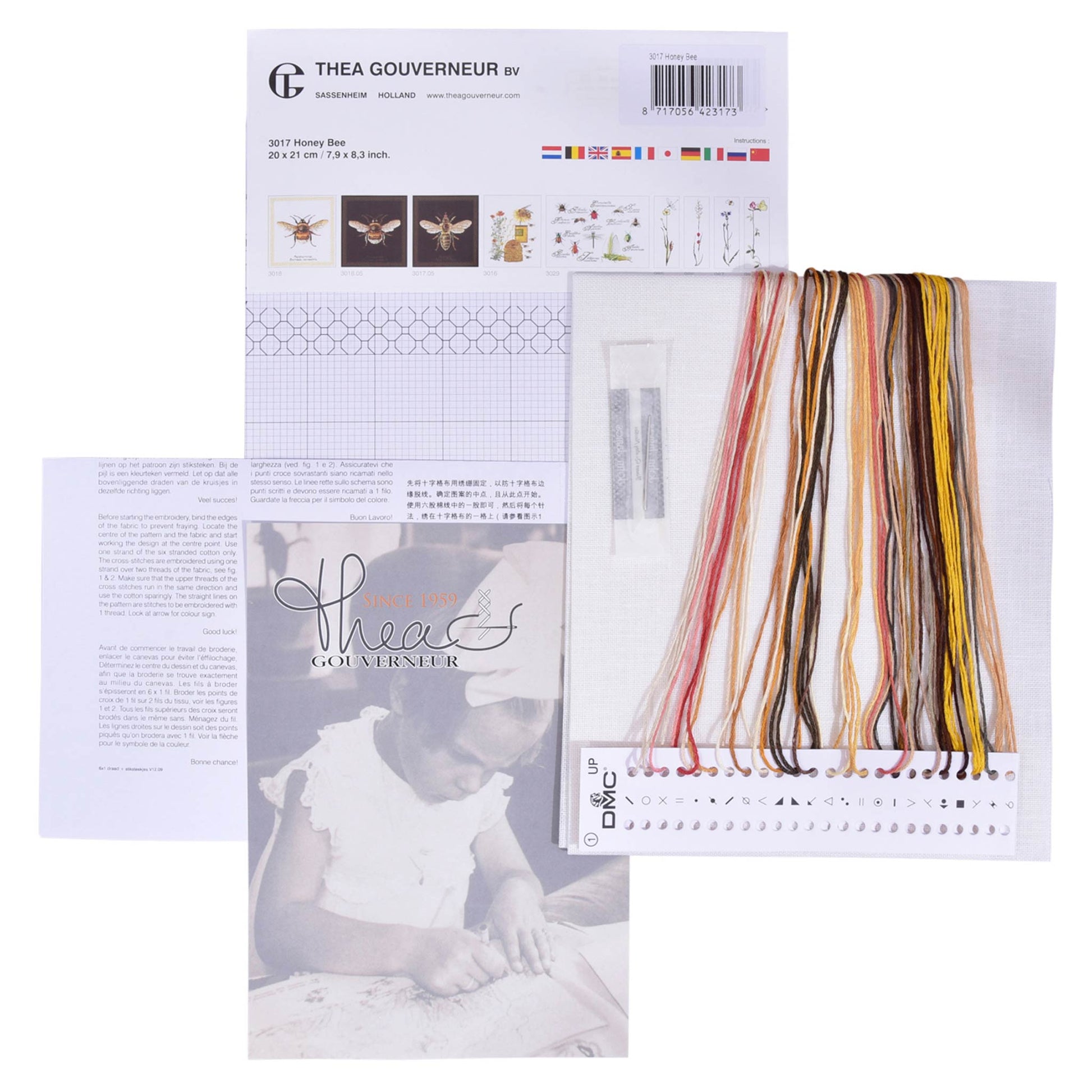 DESIGN: Nature-inspired designs are a highlight of the Thea Gouverneur cross stitch collection. This colorful counted cross stitch pattern features a beautiful detailled honey bee