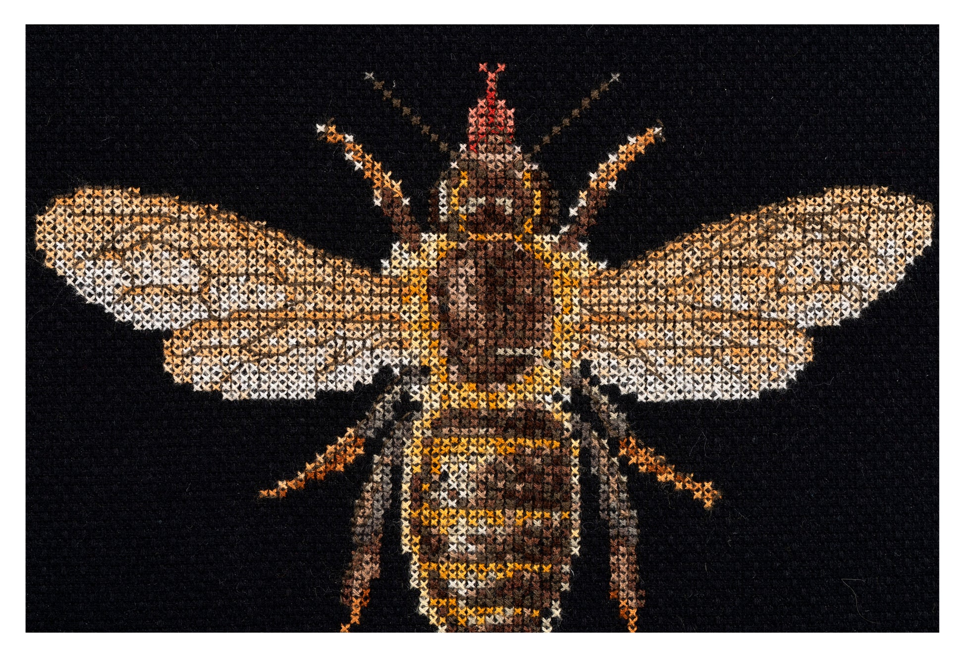 DESIGN: Nature-inspired designs are a highlight of the Thea Gouverneur cross stitch collection. This colorful counted cross stitch pattern features a beautiful detailled honey bee