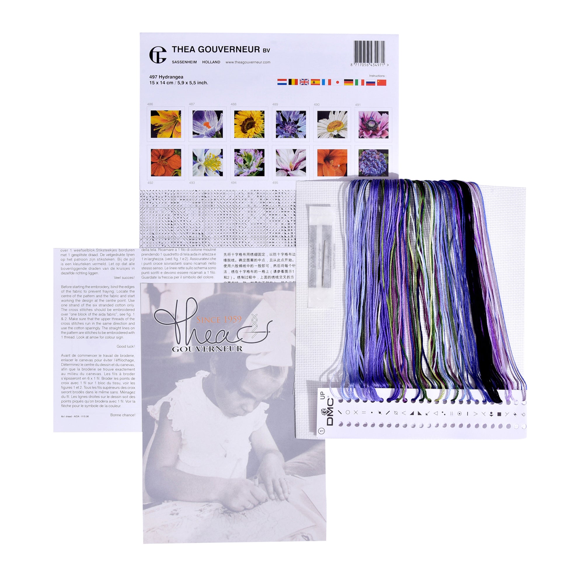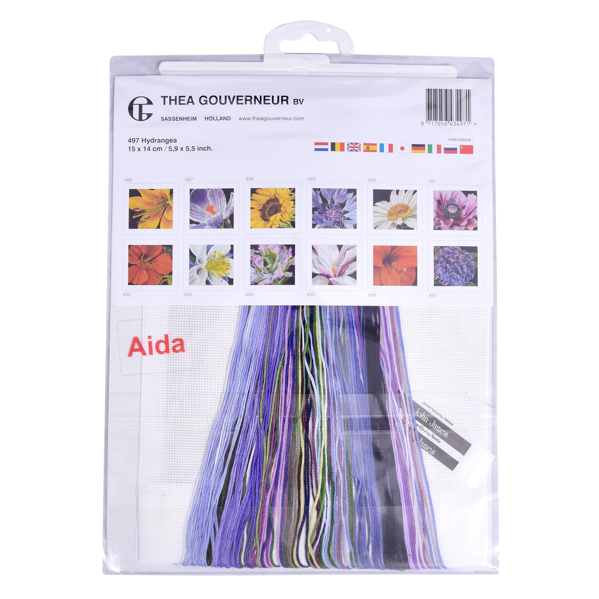 DESIGN: Nature-inspired designs are a highlight of the Thea Gouverneur cross stitch collection. This counted cross stitch pattern features a colorful Hydrangea