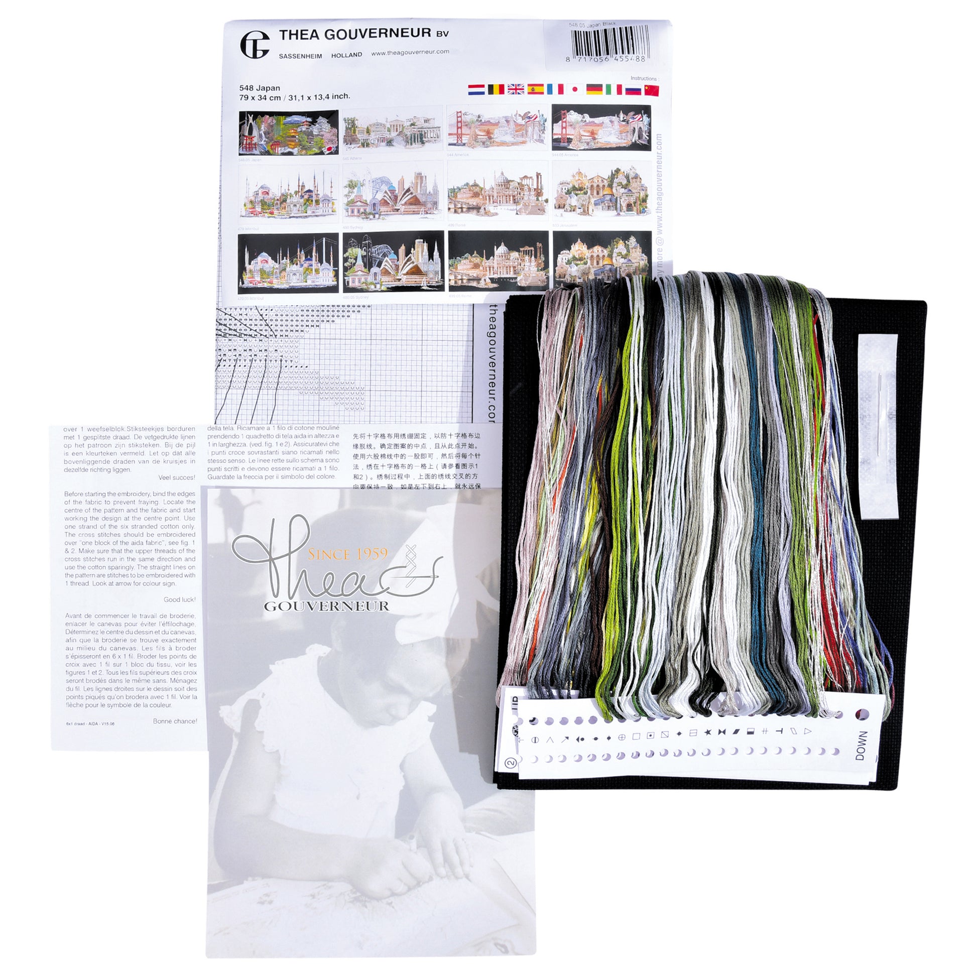 DESIGN: Landscape designs are a highlight of the Thea Gouverneur cross stitch collection. This colorful counted cross stitch pattern features some highlights of Japan in black
