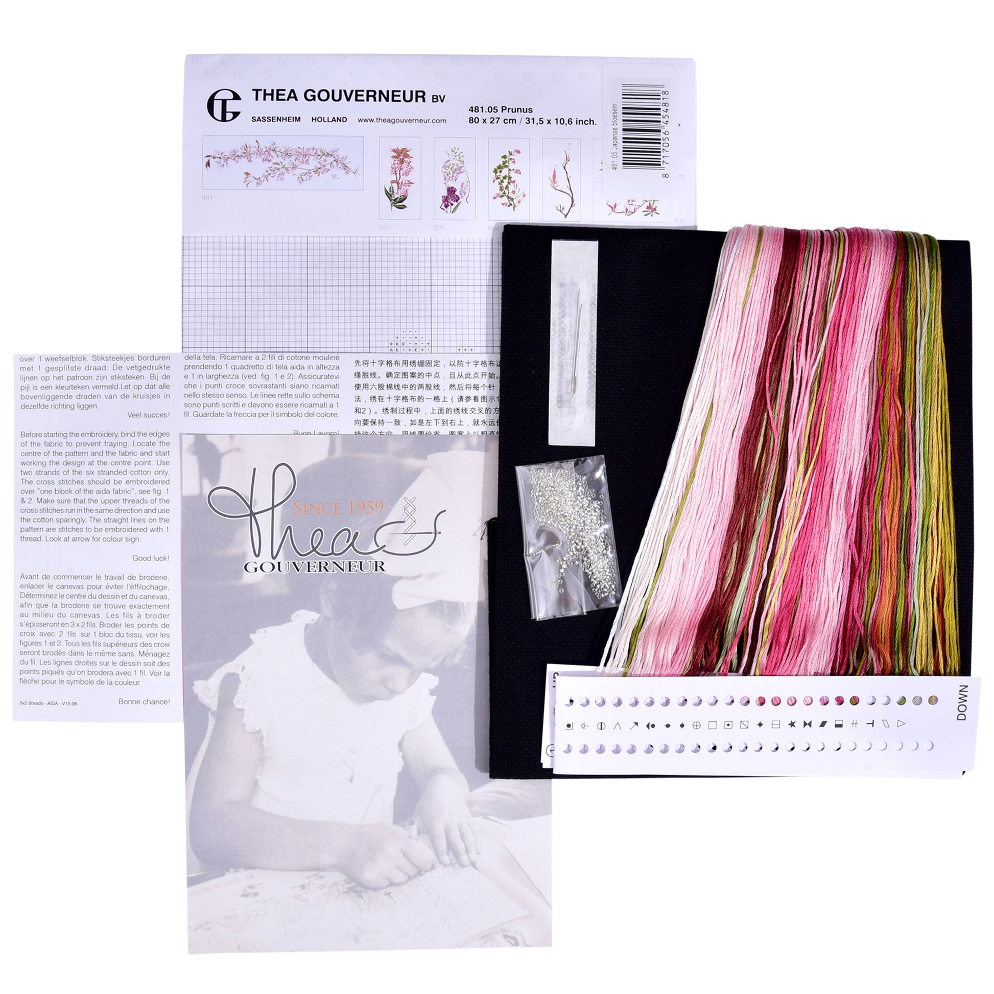 DESIGN: Nature-inspired designs are a highlight of the Thea Gouverneur cross stitch collection. This counted cross stitch pattern has beautiful Japanese Blossoms