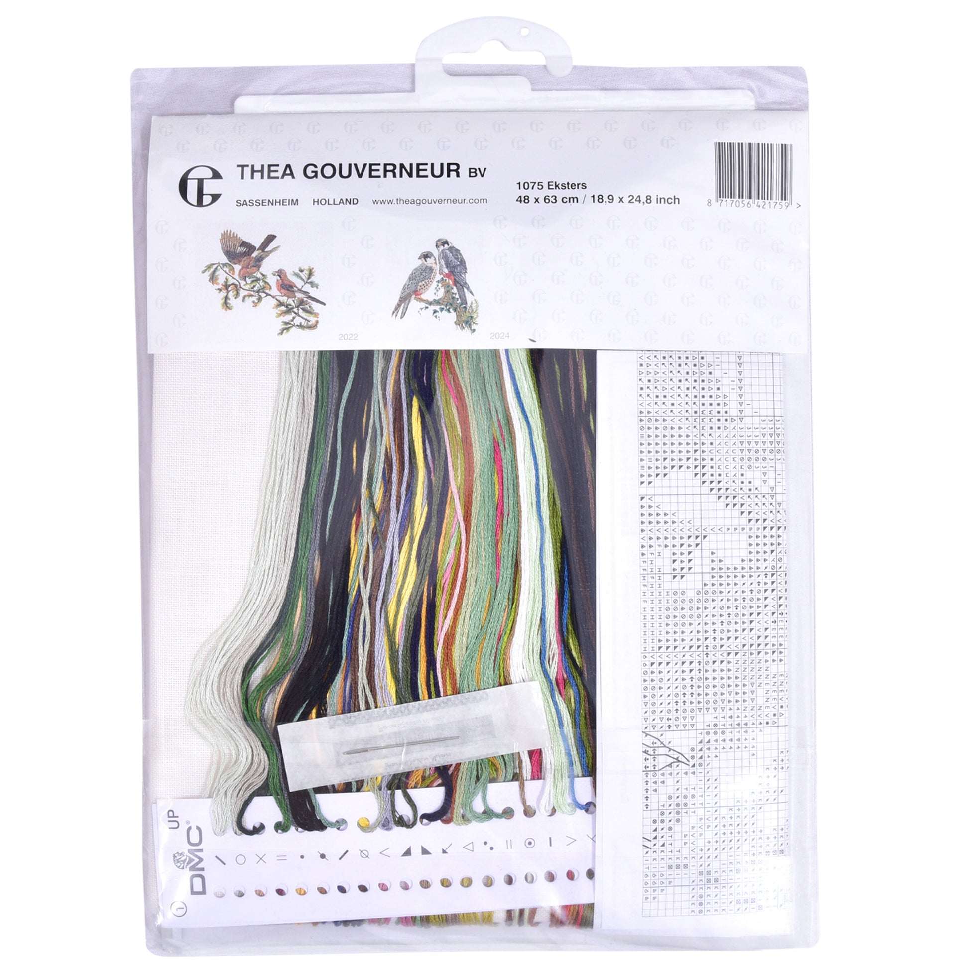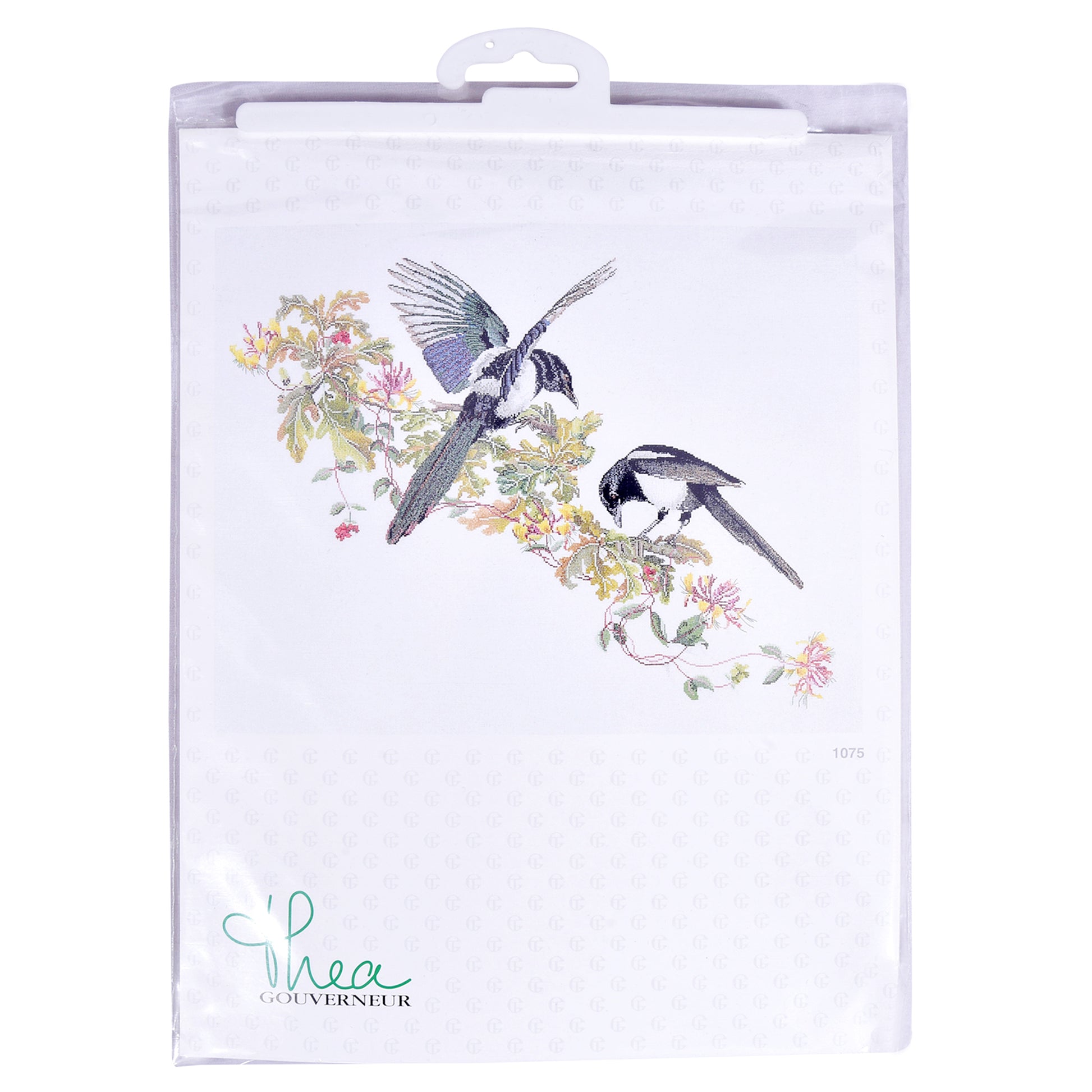 DESIGN: Nature-inspired designs are a highlight of the Thea Gouverneur cross stitch collection. This colorful counted cross stitch pattern features magpies on a branch