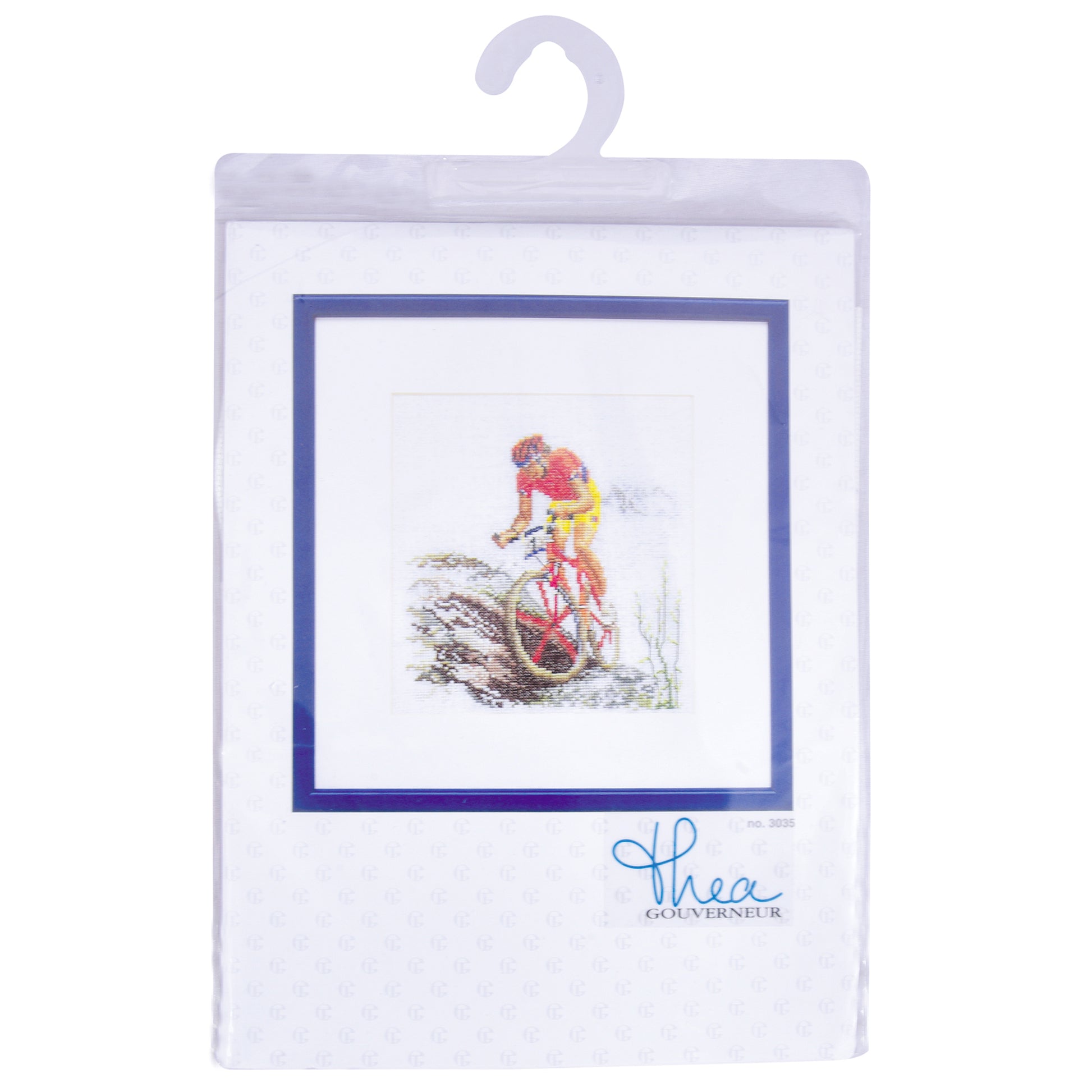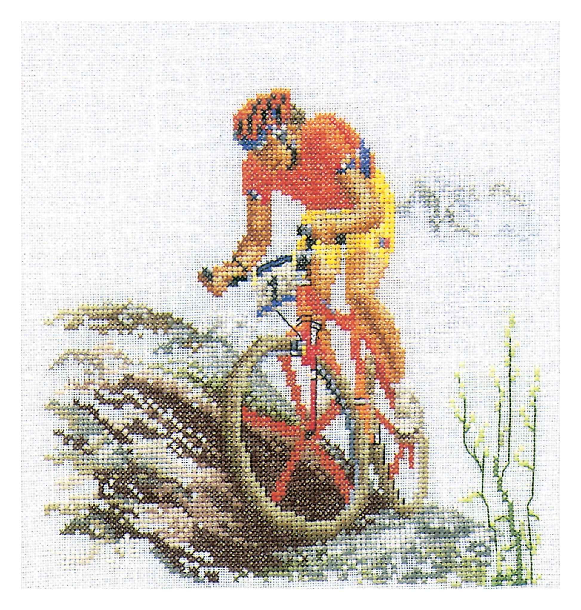 DESIGN: Thea Gouverneur has a large range of sport-themed counted cross stitch kits. This colourful pattern features a mountainbiker