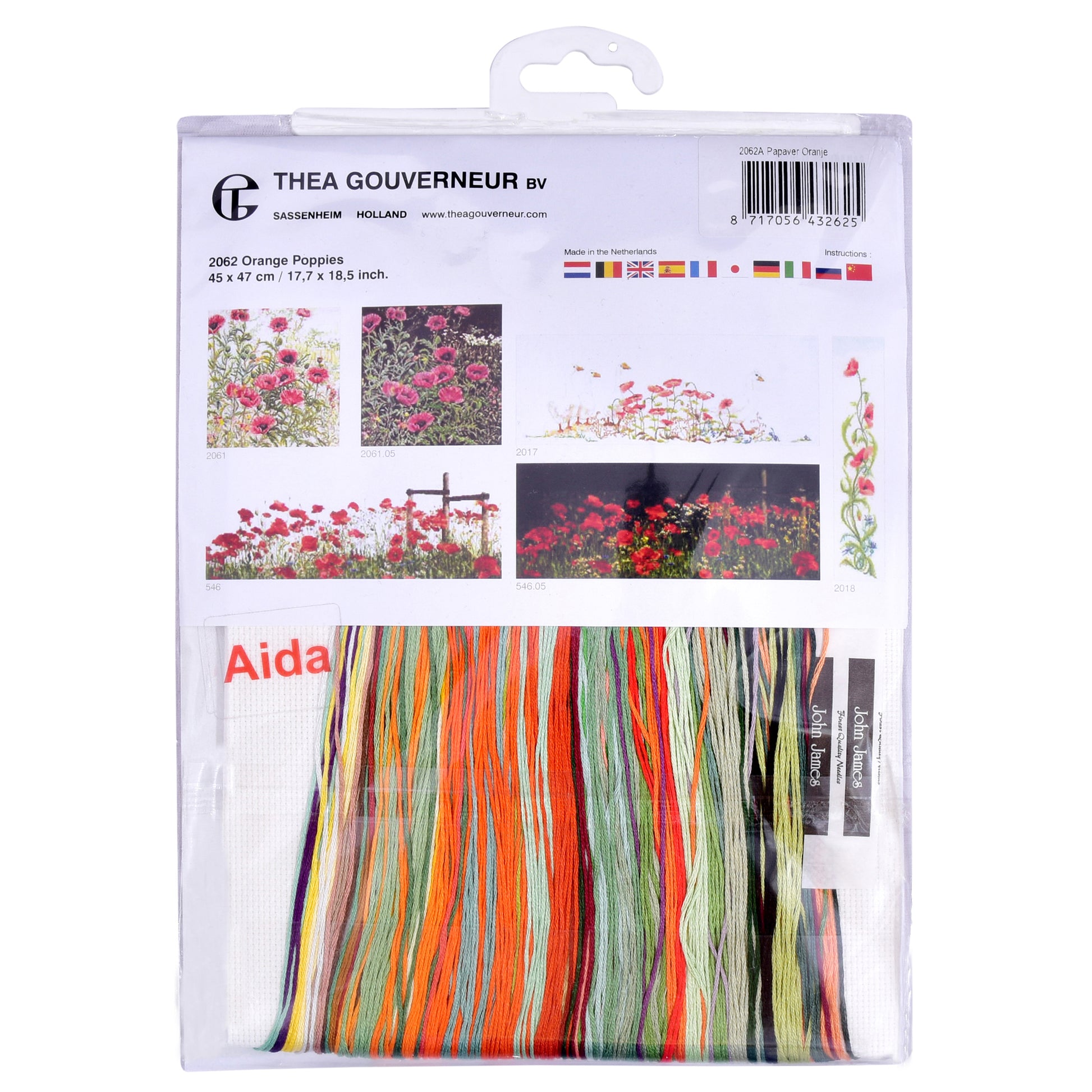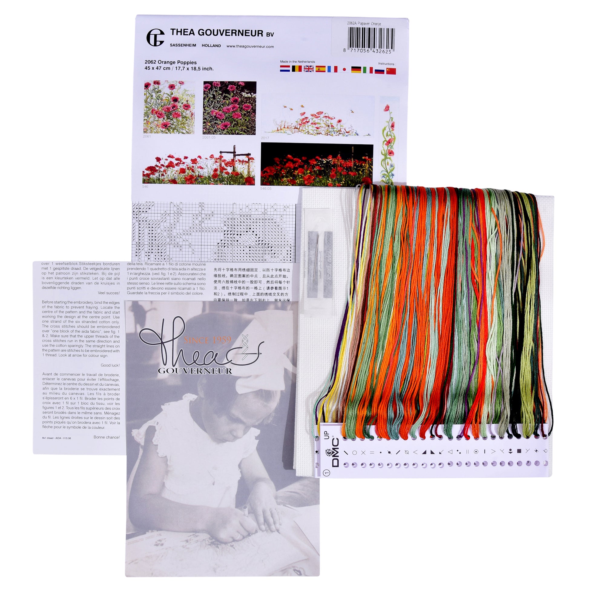 DESIGN: Nature-inspired designs are a highlight of the Thea Gouverneur cross stitch collection. This colorful counted cross stitch pattern features orange poppies