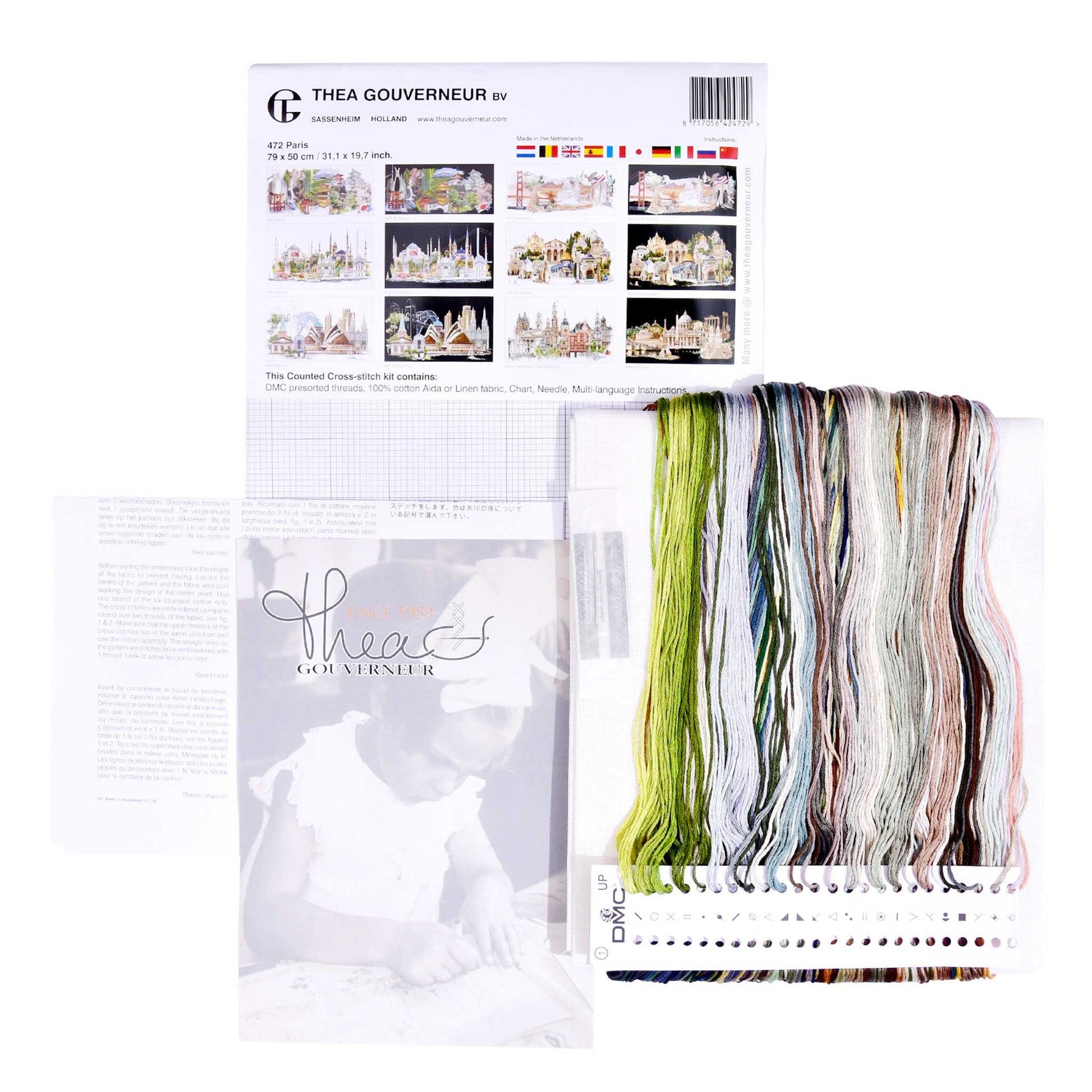 DESIGN: Landscape designs are a highlight of the Thea Gouverneur cross stitch collection. This colorful counted cross stitch pattern features a view of Paris