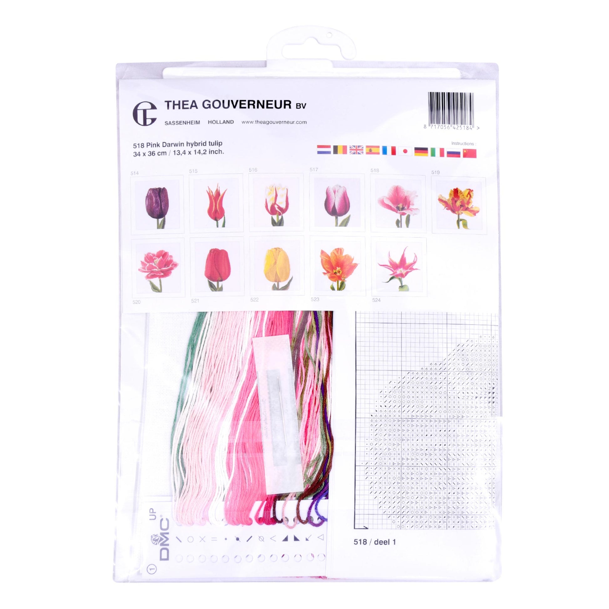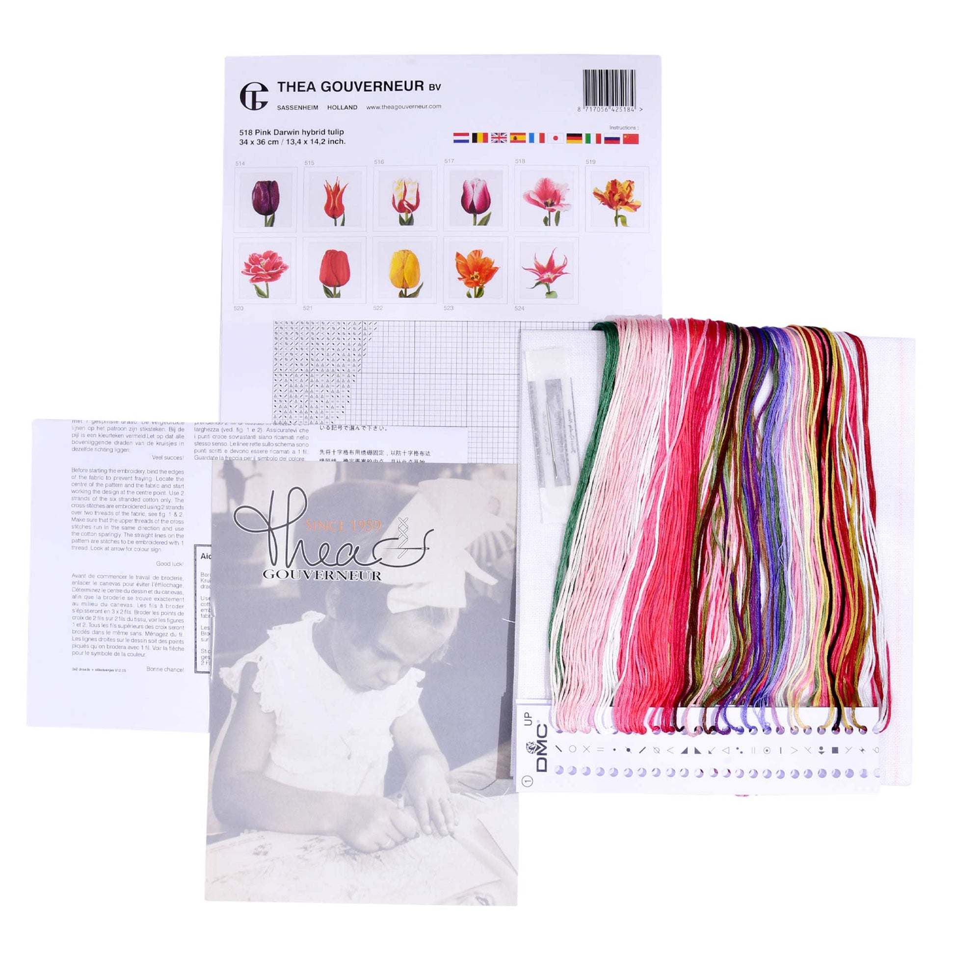 DESIGN: Nature-inspired designs are a highlight of the Thea Gouverneur cross stitch collection. This counted cross stitch pattern features a Pink Darwin Hybrid Tulip