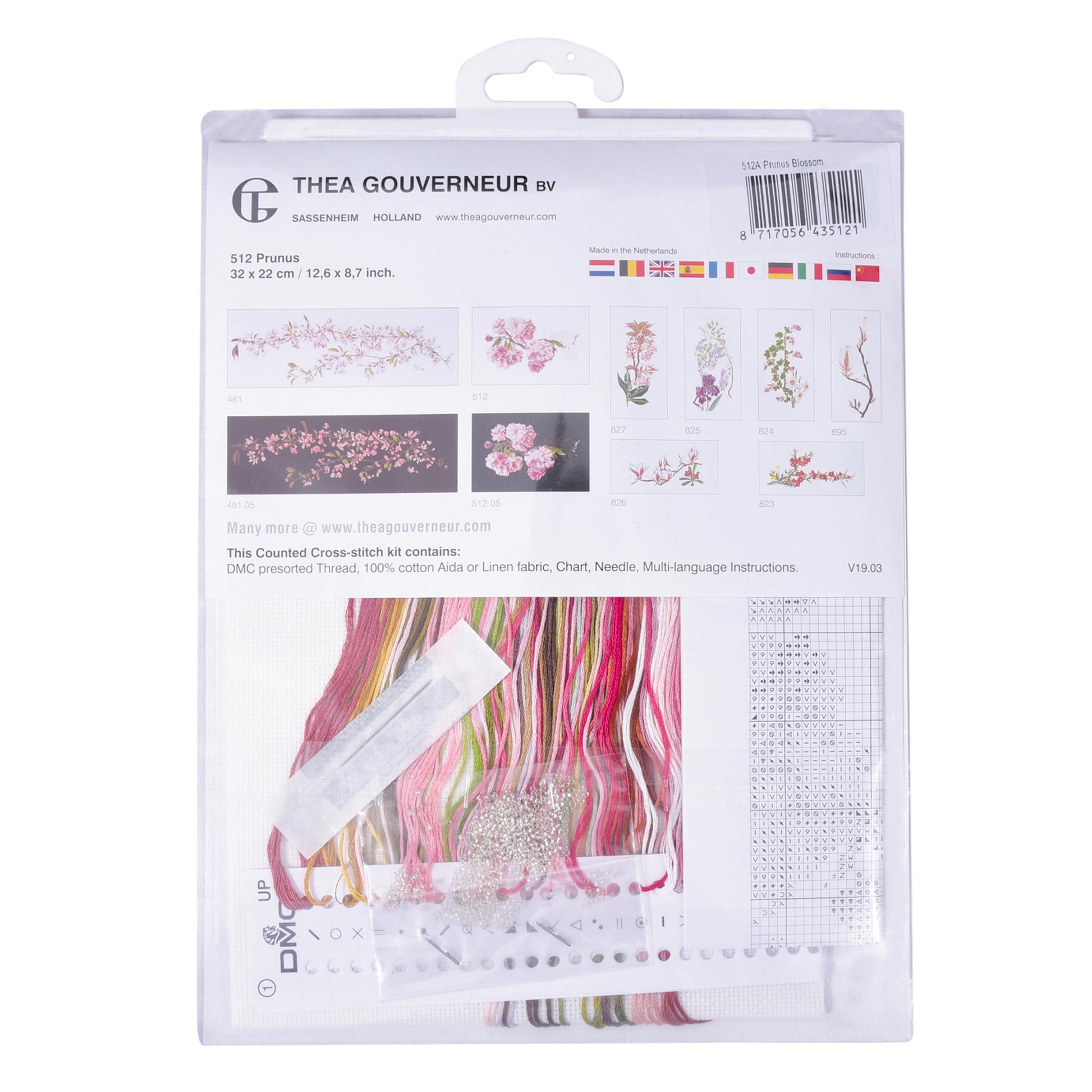 DESIGN: Nature-inspired designs are a highlight of the Thea Gouverneur cross stitch collection. This counted cross stitch pattern features a pink Prunus