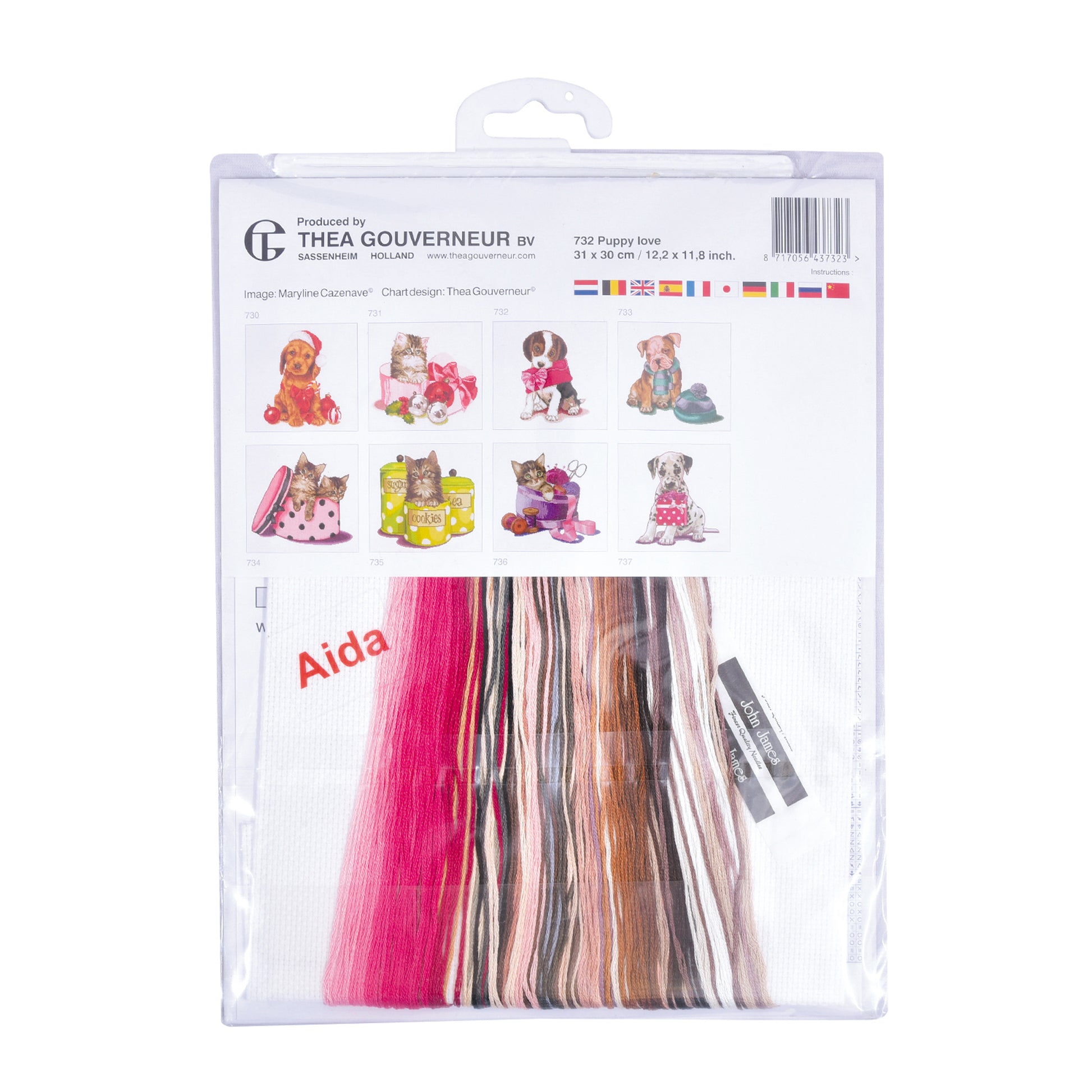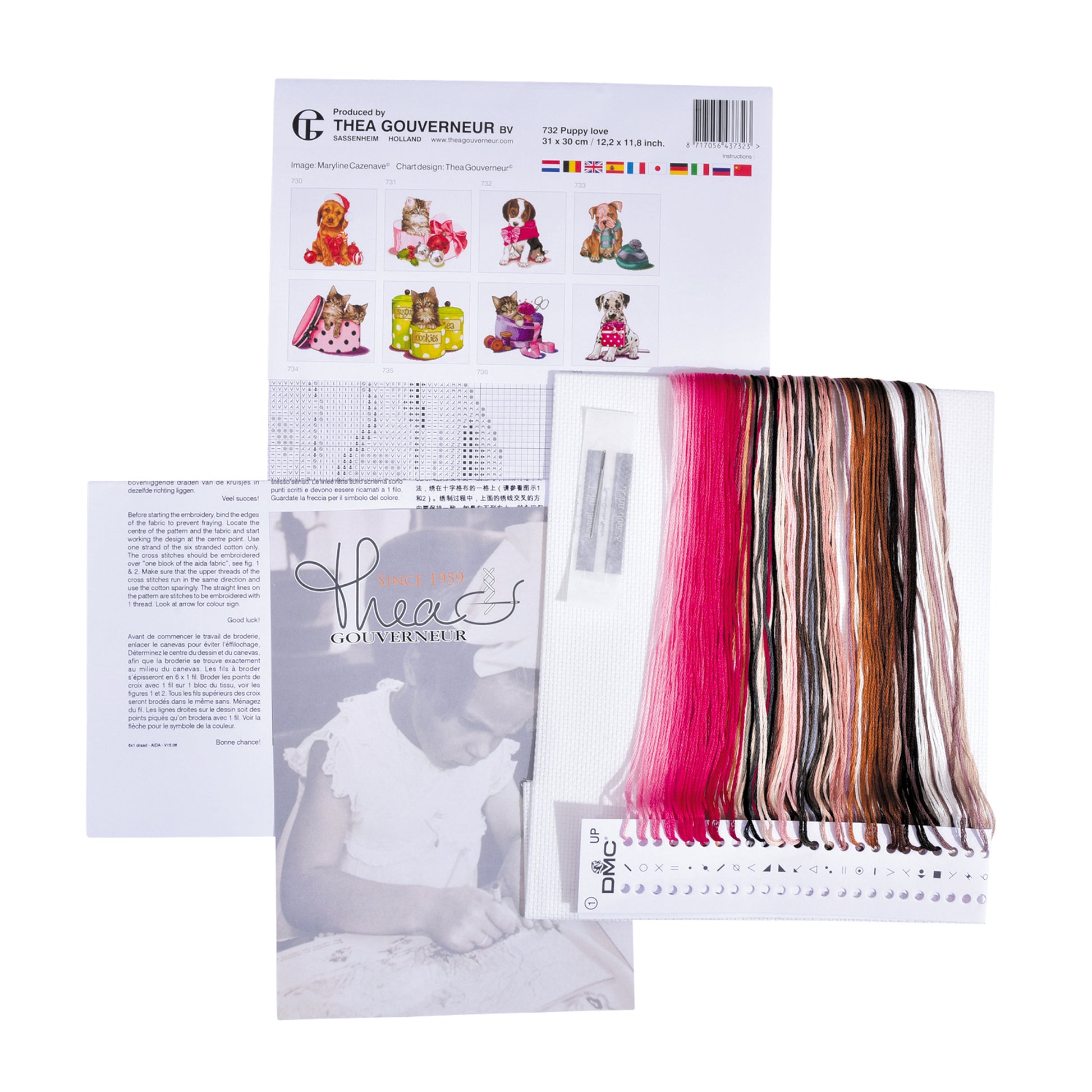 DESIGN: Thea Gouverneur has a large range of culture-themed counted cross stitch kits. This counted cross stitch pattern features a Puppy with love