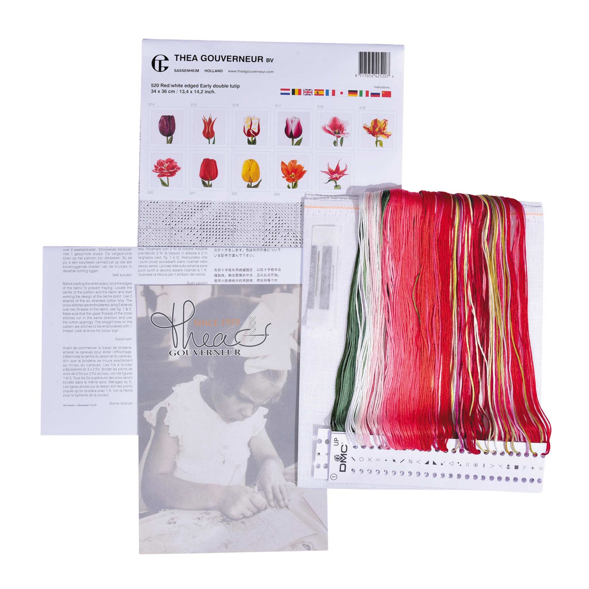 DESIGN: Nature-inspired designs are a highlight of the Thea Gouverneur cross stitch collection. This counted cross stitch pattern features a Red and White Edged Tulip