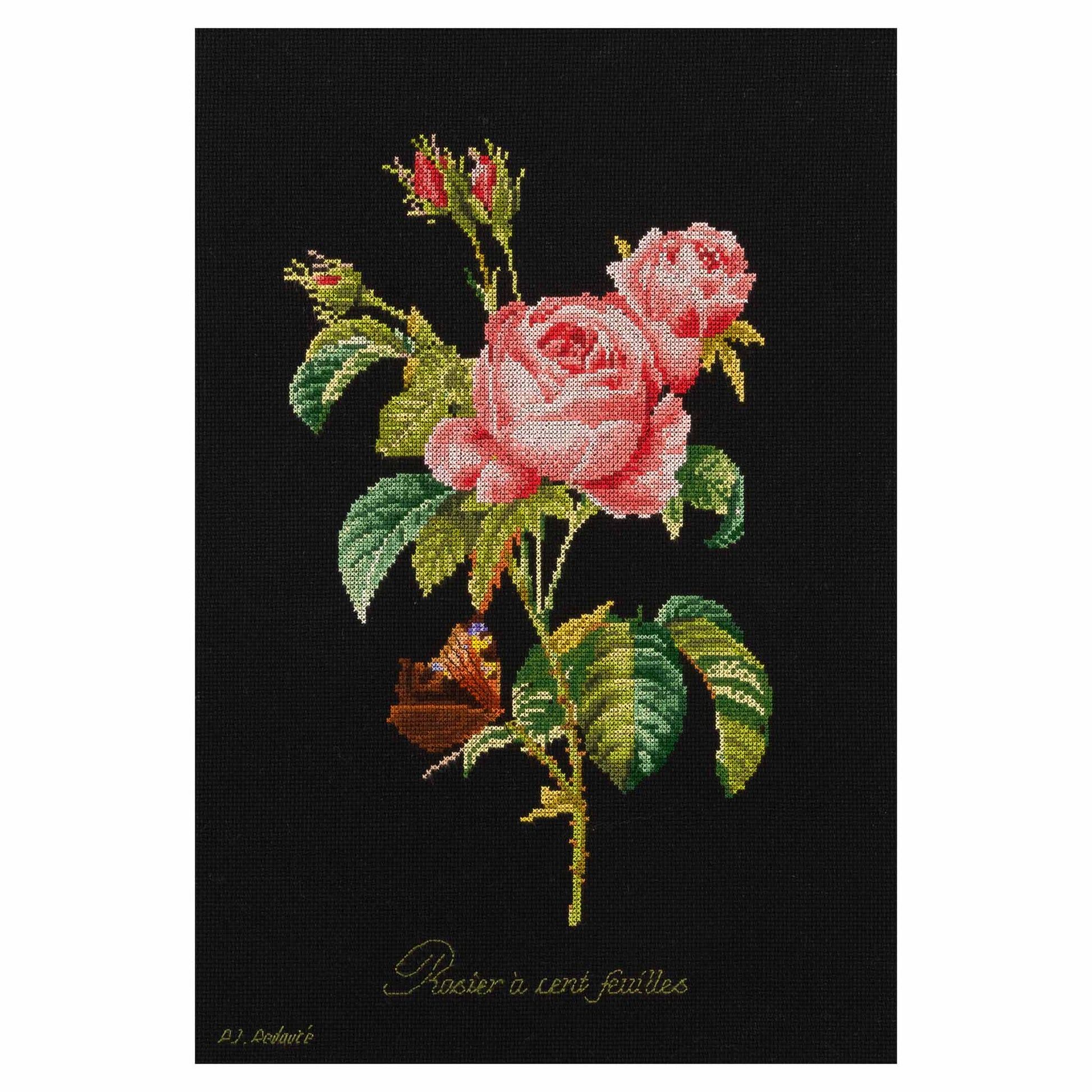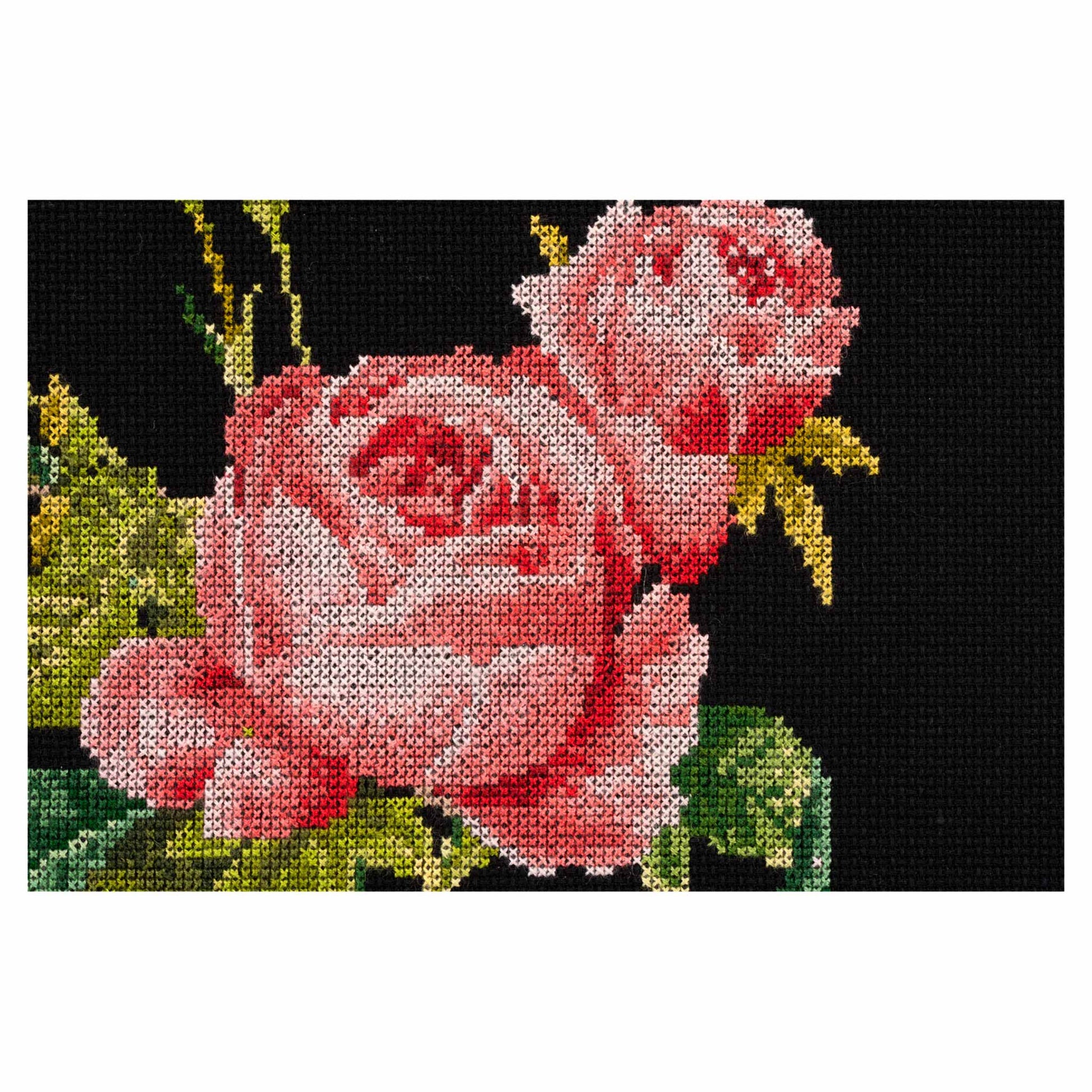 DESIGN: Nature-inspired designs are a highlight of the Thea Gouverneur cross stitch collection. This colorful counted cross stitch pattern features beautiful roses on a small branch