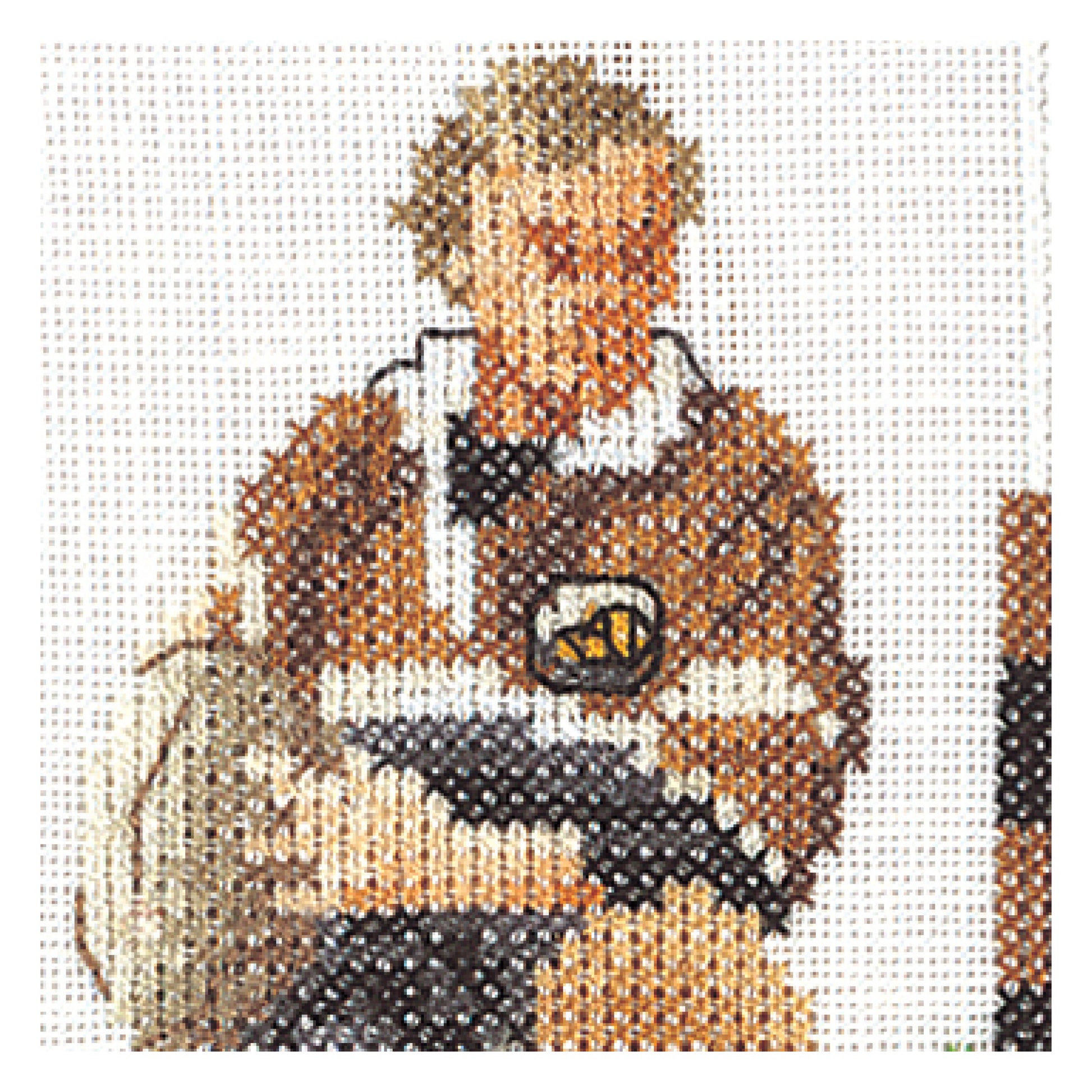 DESIGN: Thea Gouverneur has a large range of sport-themed counted cross stitch kits. This colourful pattern features two rugby players on a rugby field