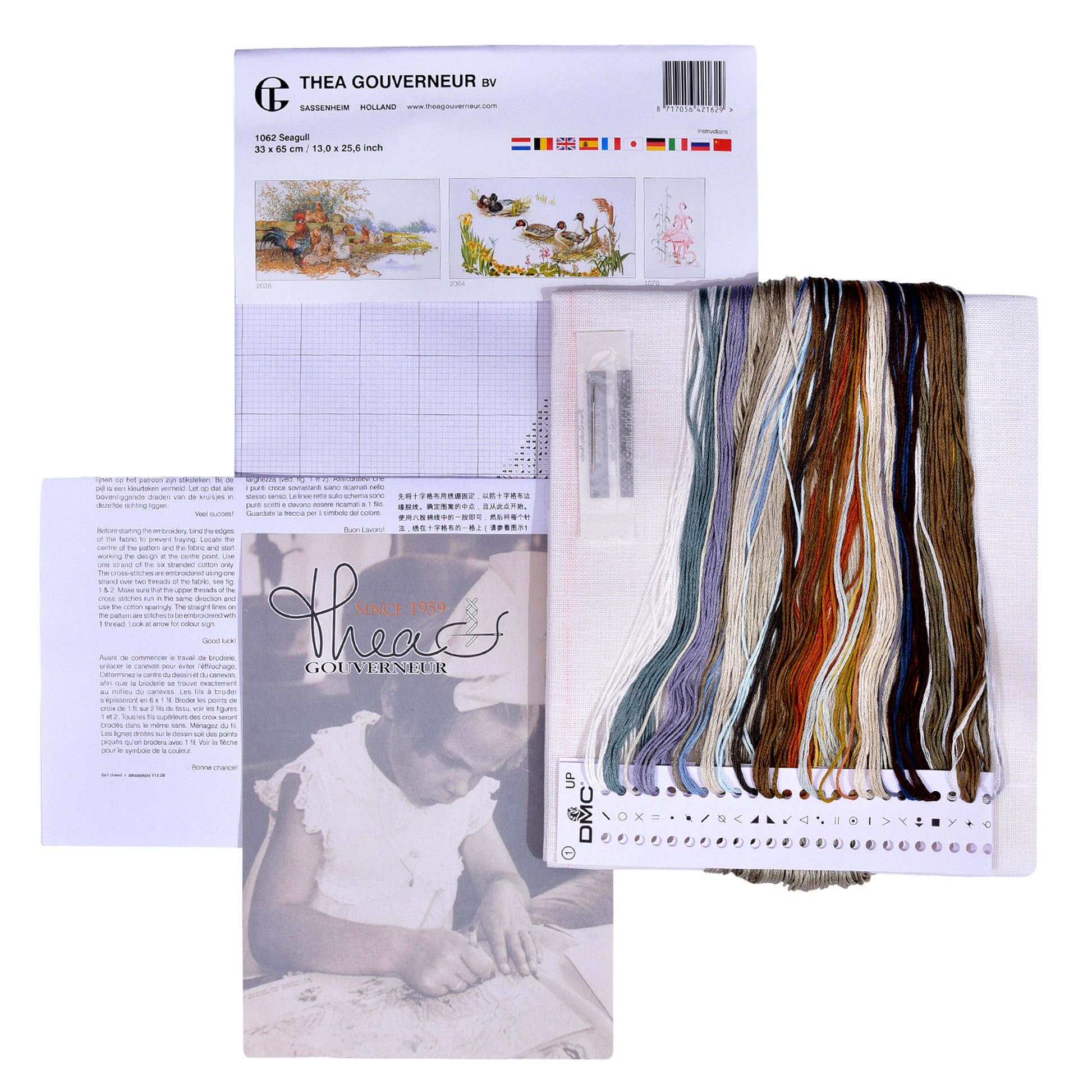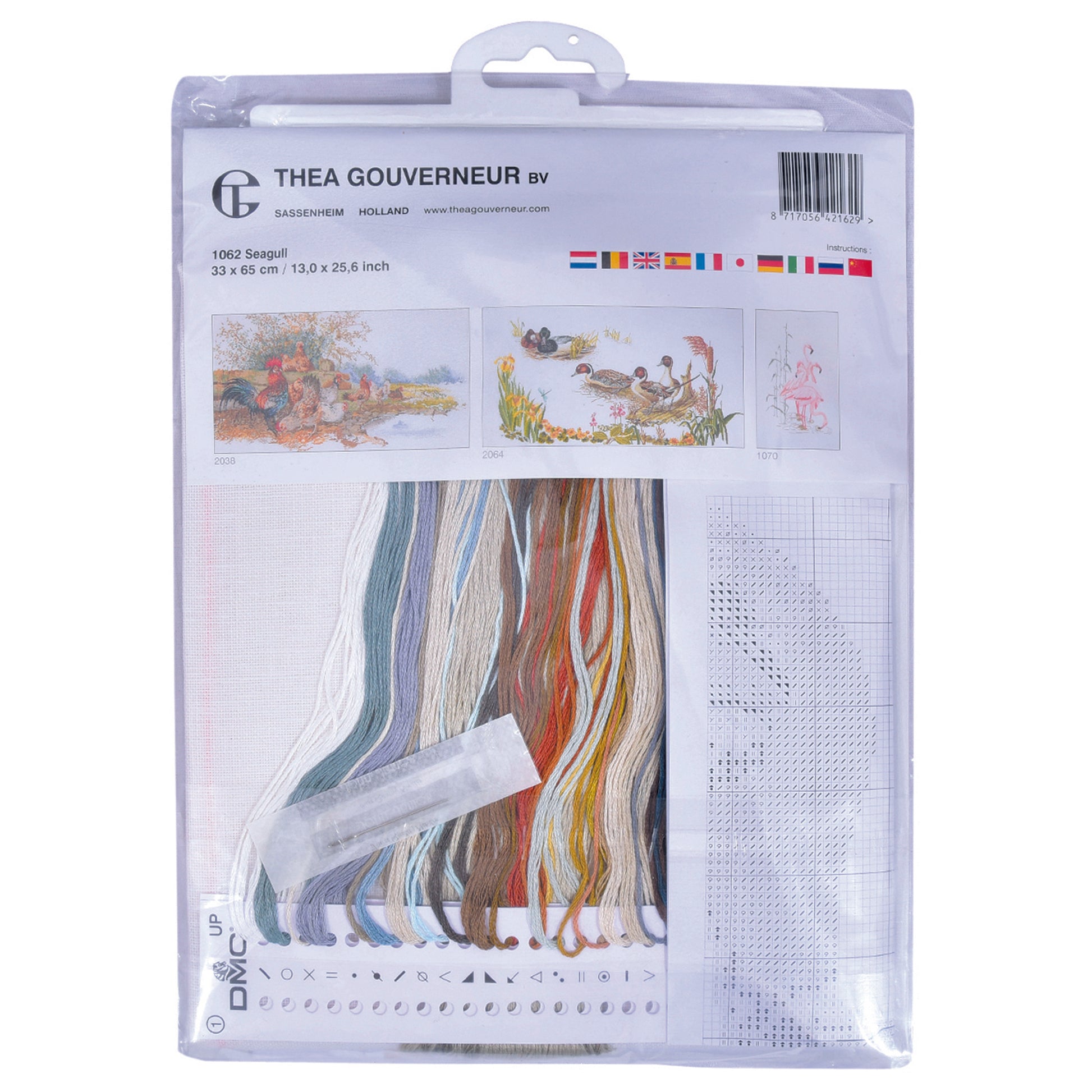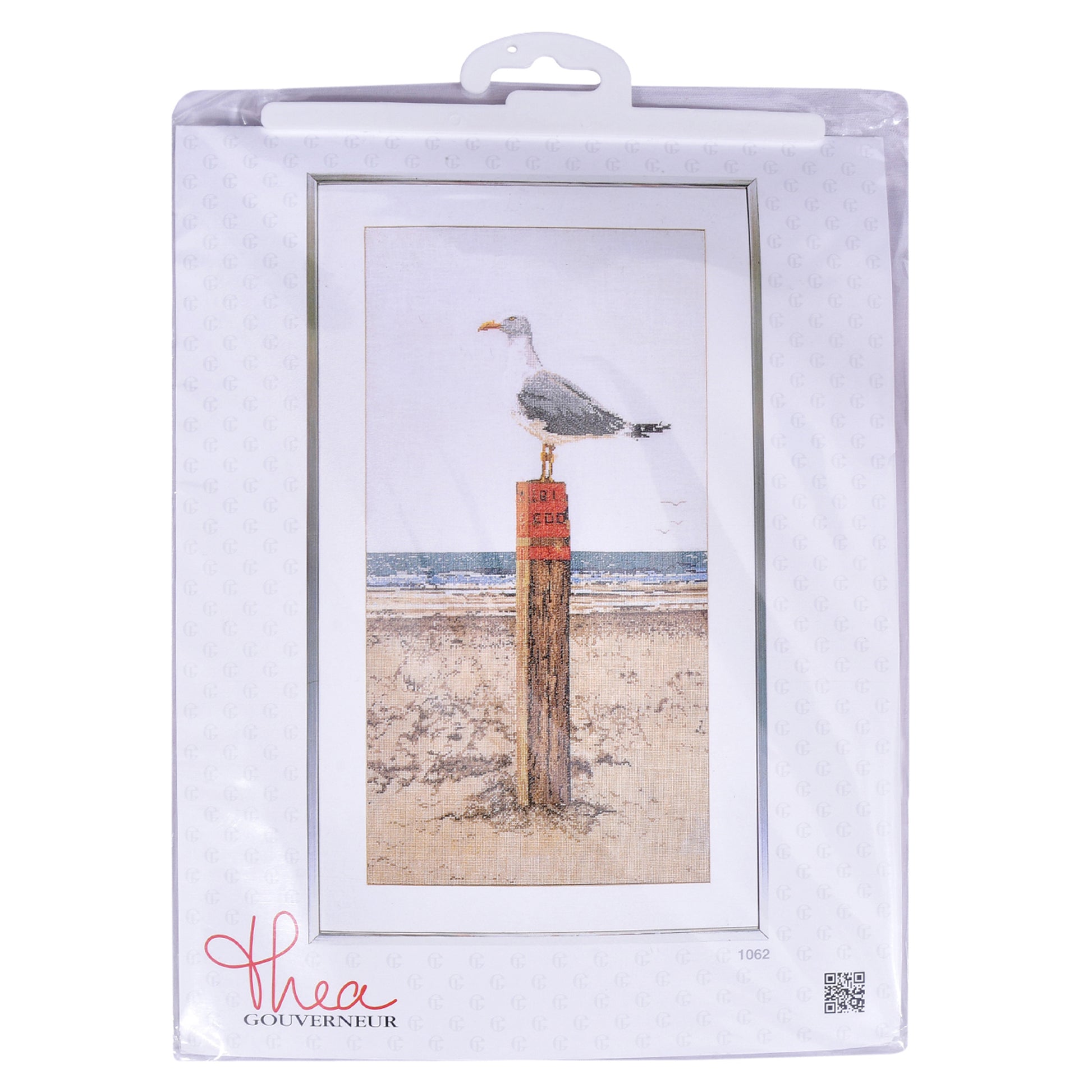 DESIGN: Nature-inspired designs are a highlight of the Thea Gouverneur cross stitch collection. This colorful counted cross stitch pattern features a seagull on a pole