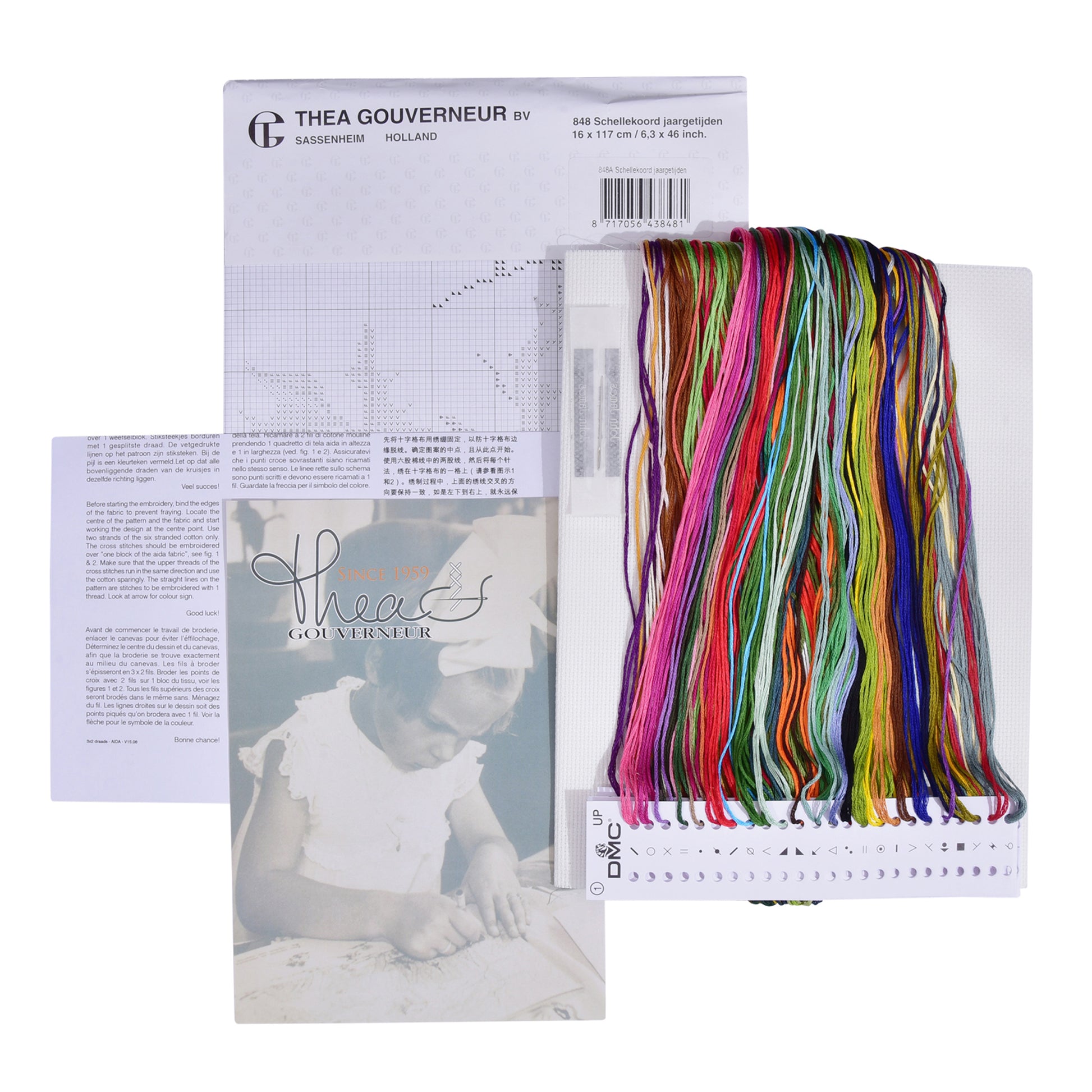 DESIGN: Nature-inspired designs are a highlight of the Thea Gouverneur cross stitch collection. This counted cross stitch pattern features a Seasons Bell Pull