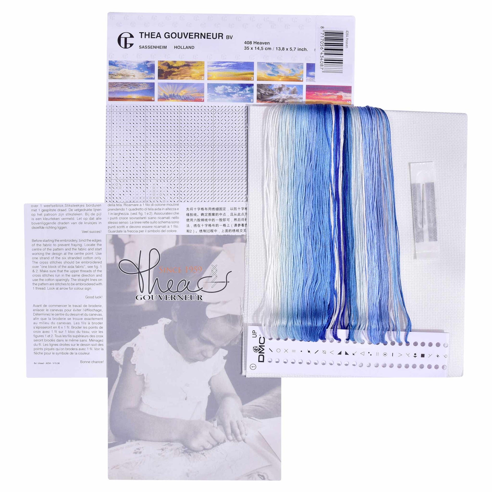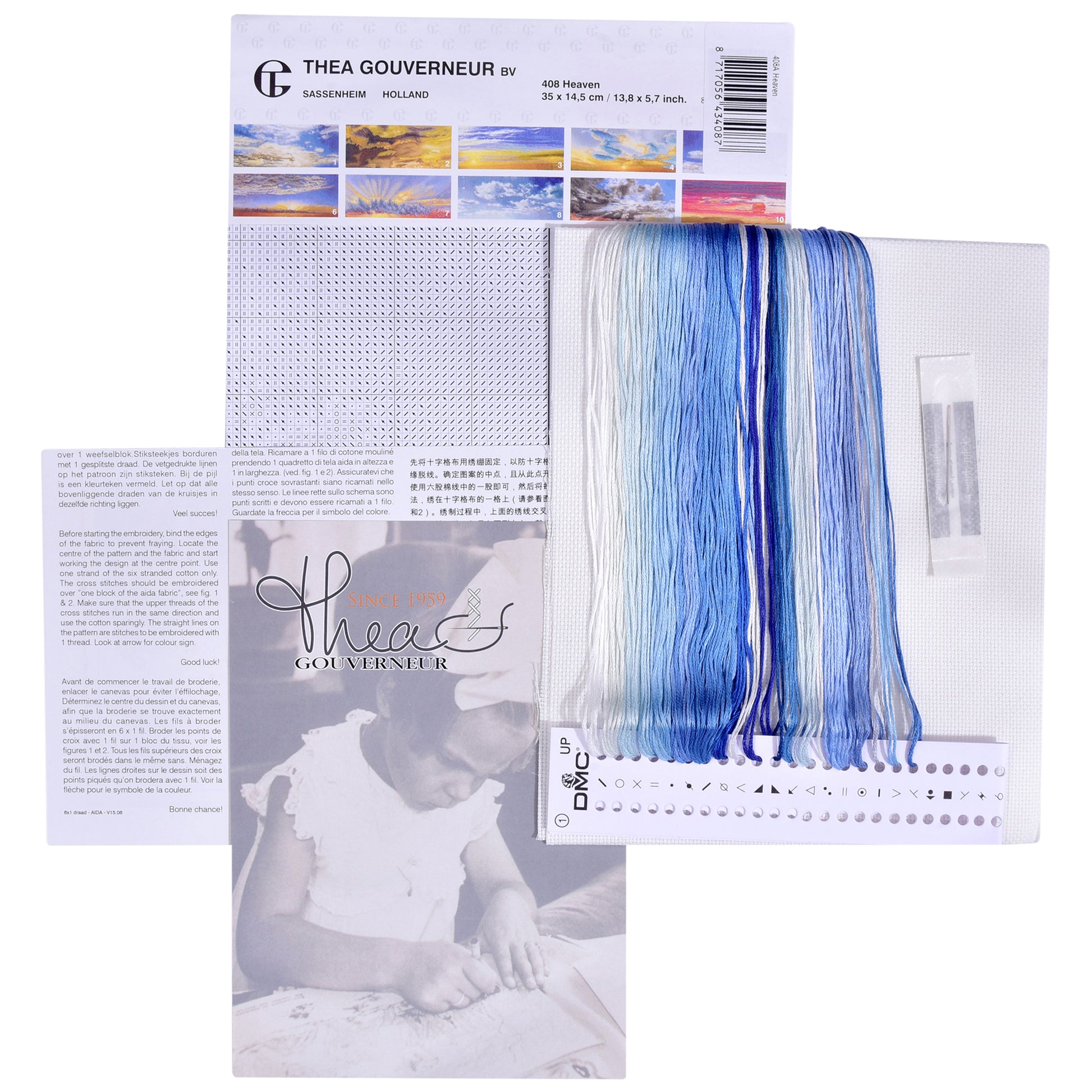 INCLUDED: The Package contains all the needed (very high-quality) supplies to start embroidering immediately: Aida fabric, pre-sorted DMC floss, John James needle, easy-to-follow chart and instructions in multi languages including English