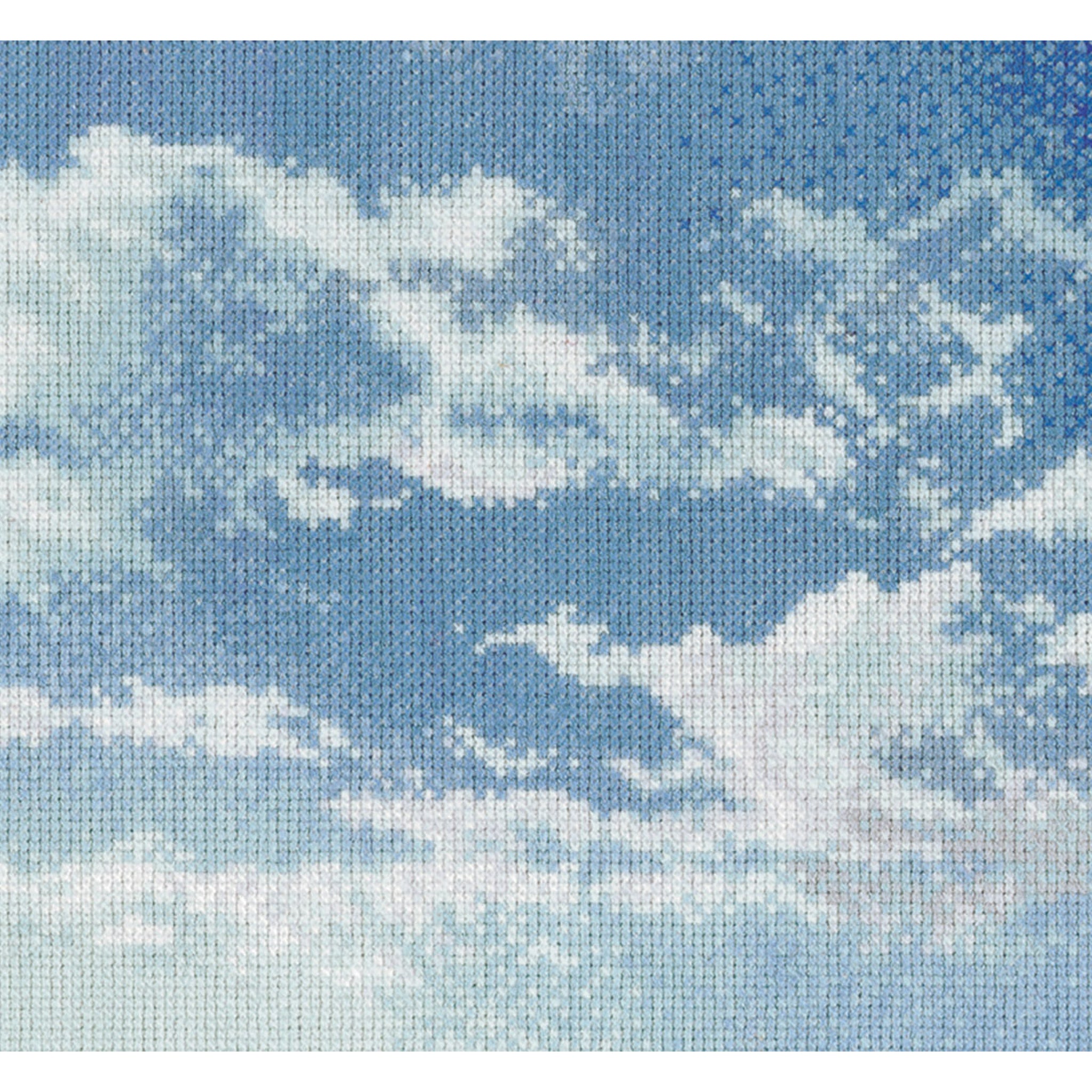 DESIGN: Nature-inspired designs are a highlight of the Thea Gouverneur cross stitch collection. This colorful counted cross stitch pattern features a beautiful cloudy sky