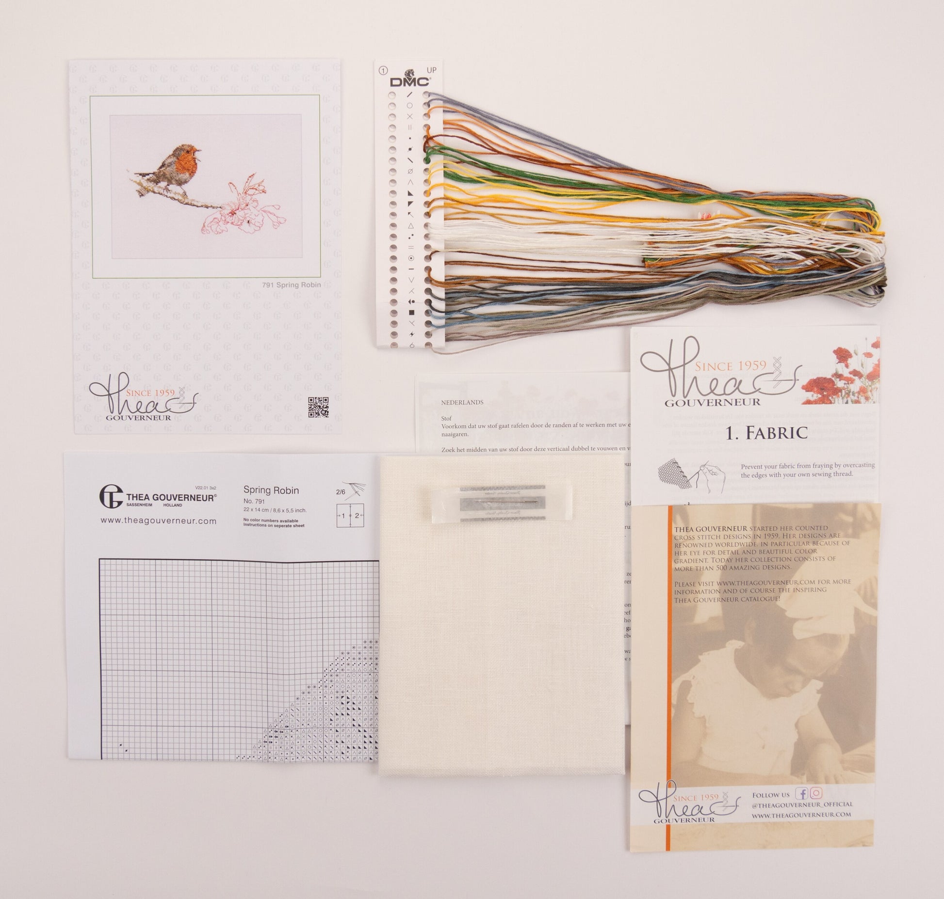 DESIGN: Nature-inspired designs are a highlight of the Thea Gouverneur cross stitch collection. This counted cross stitch pattern features a bird in spring