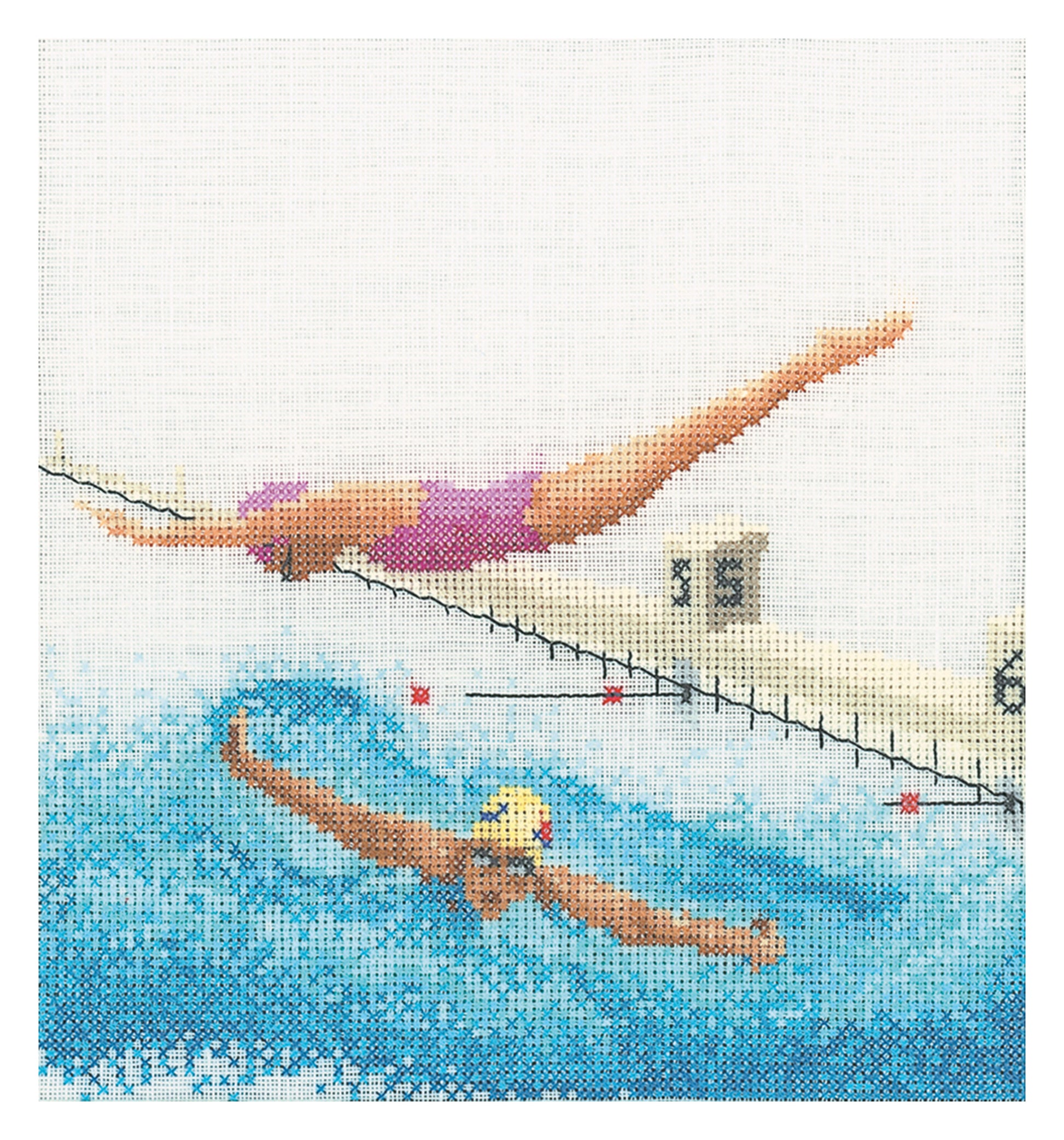 DESIGN: Thea Gouverneur has a large range of sport-themed counted cross stitch kits. This colourful pattern features a girl diving and a man swimming in a swimming pool