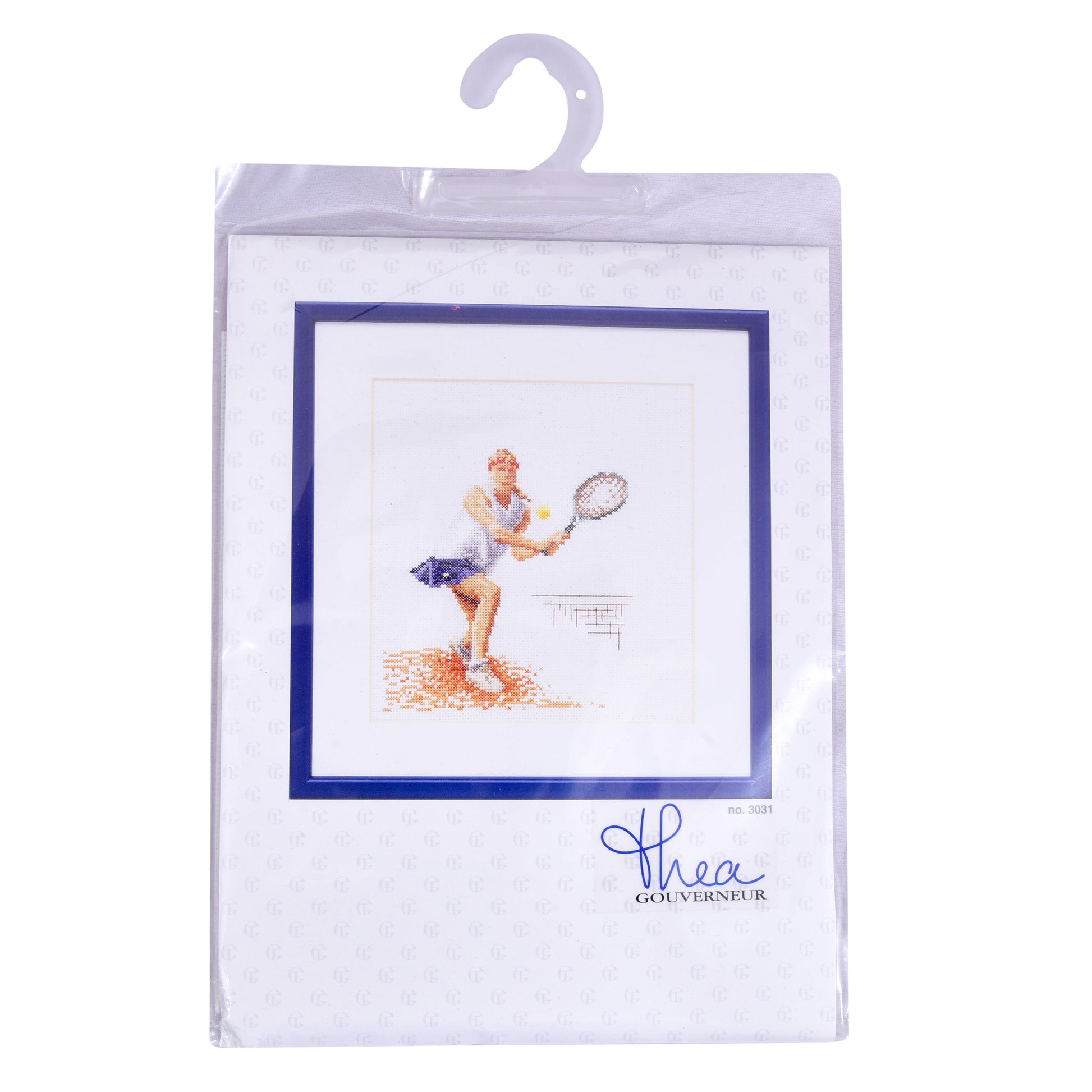DESIGN: Thea Gouverneur has a large range of sport-themed counted cross stitch kits. This colourful pattern features a female tennis player on a tennis court