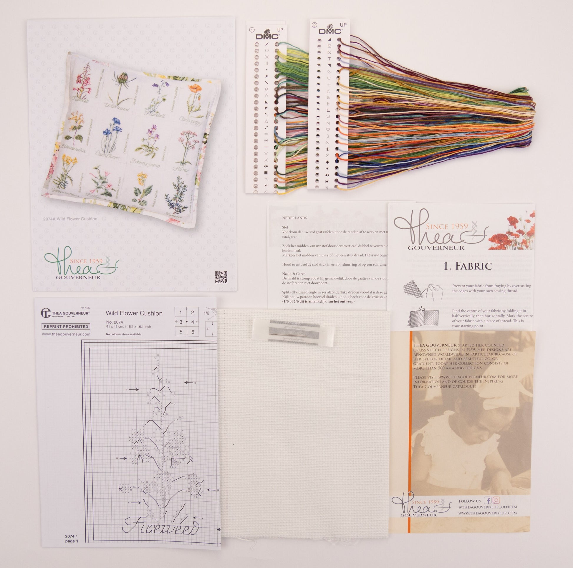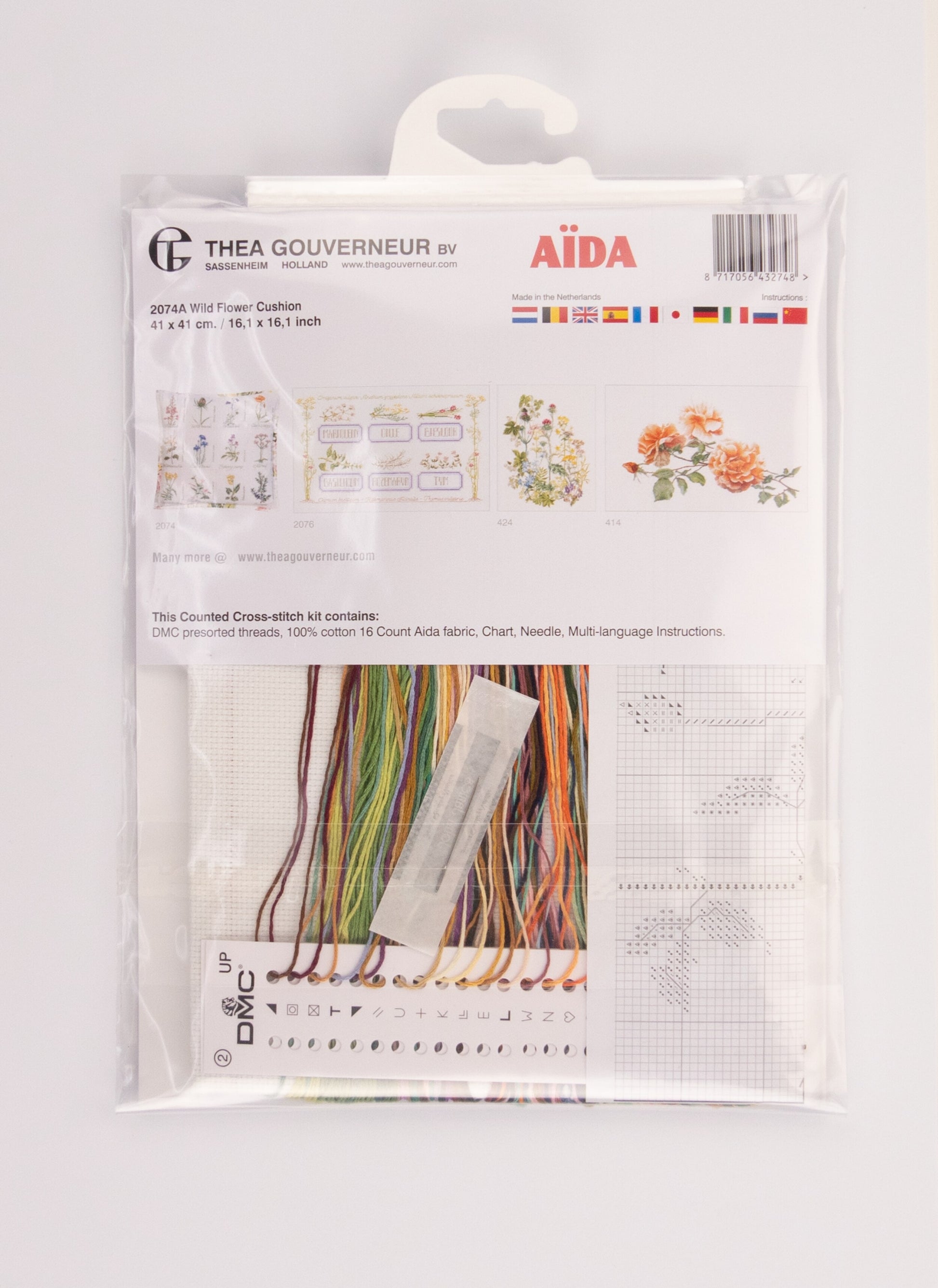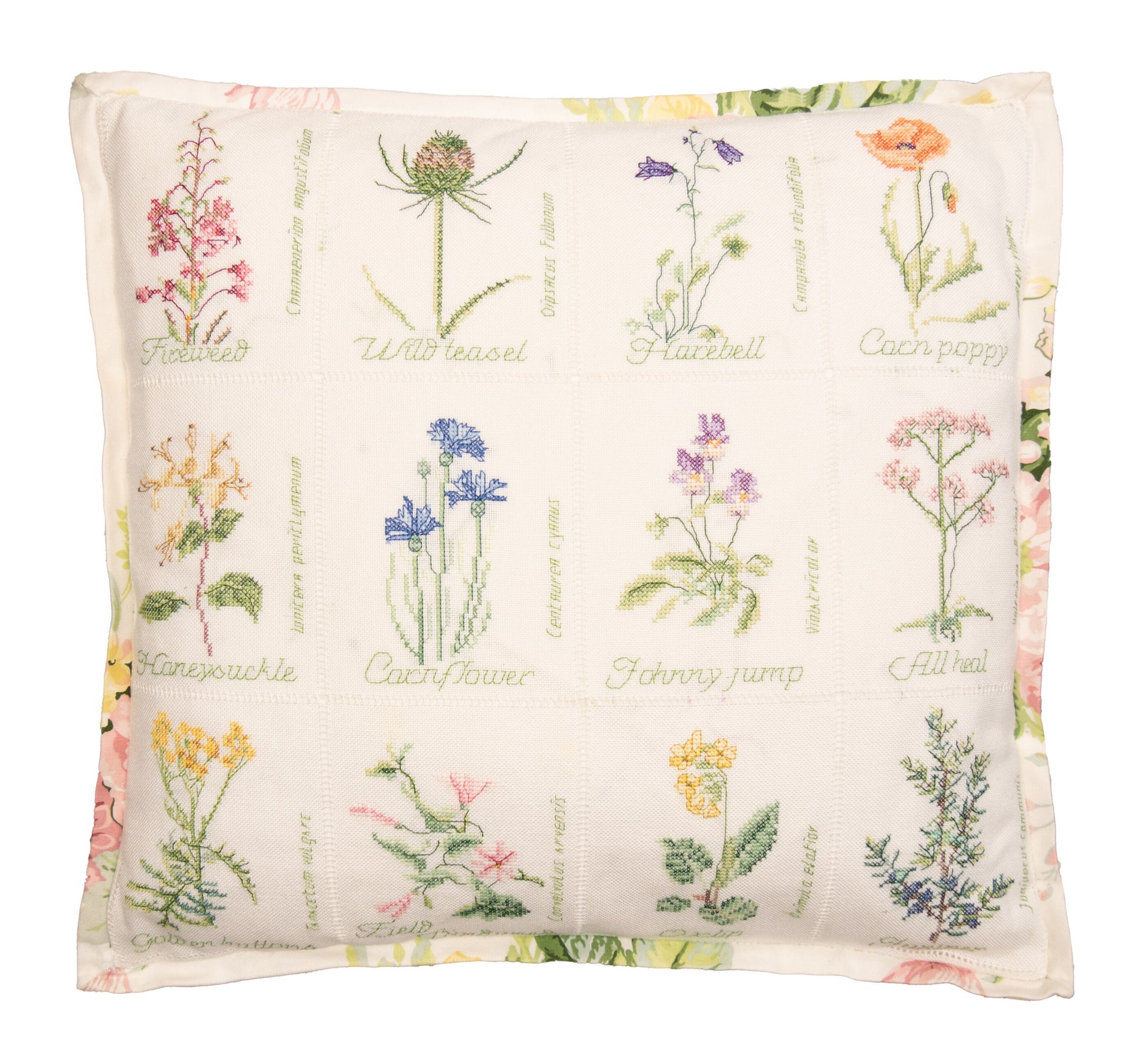 DESIGN: Nature-inspired designs are a highlight of the Thea Gouverneur cross stitch collection. This colorful counted cross stitch pattern for a cushion features wild flowers