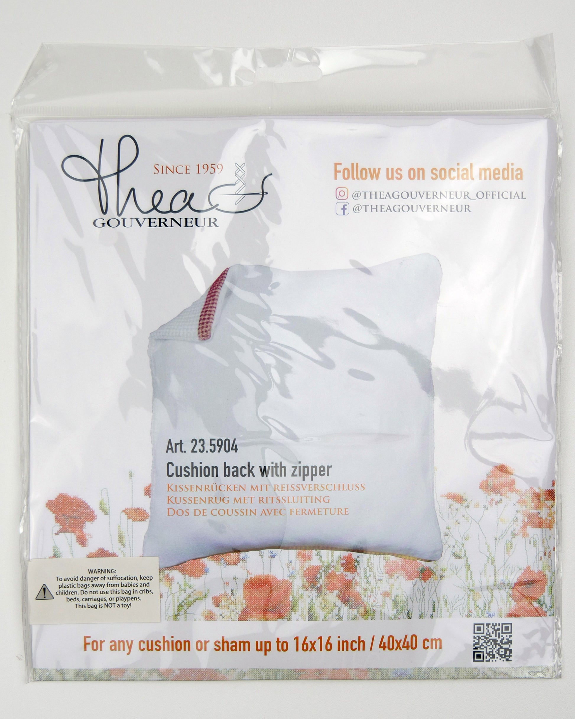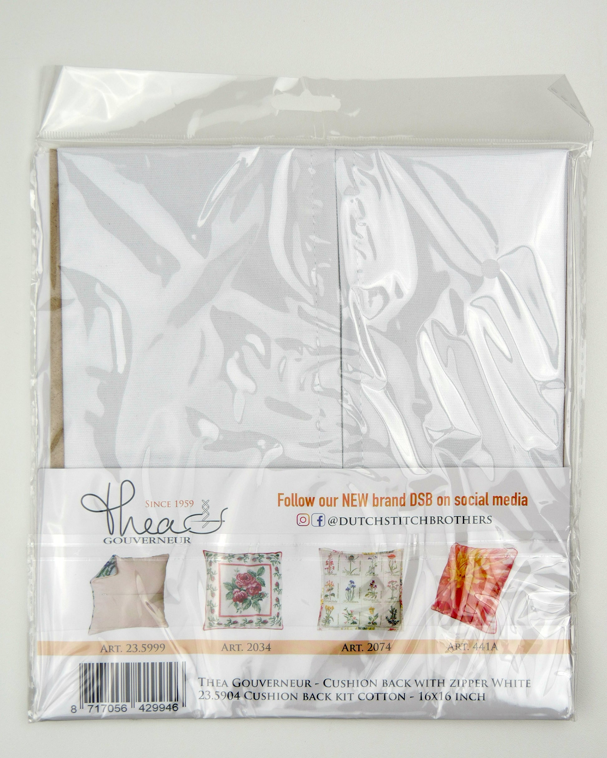 DESIGN: You can now create your own embroidery pillow! This plain cushion back is white of color. Zip the pillowback to your own cross stitch creation by Thea Gouverneur and turn your favorite piece of art into a cushion. This DIY kit is perfect for personalized home decoration.